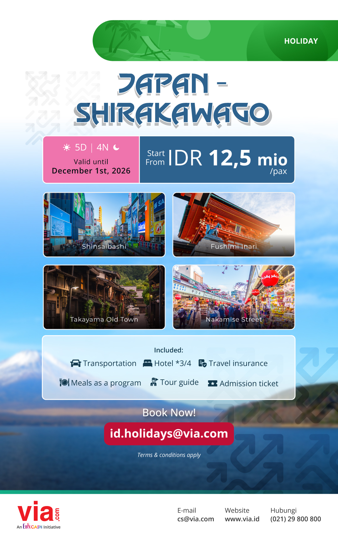 Embark on an adventure to Japan and experience the beauty of Shirakawa-go, start from IDR 12,5 mio/pax!