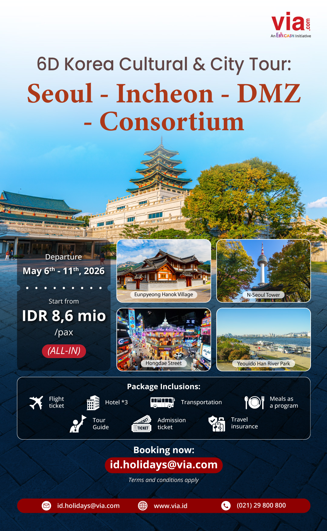 Experience South Korea from Seoul, Incheon to DMZ in a culture-packed tour itinerary, start from IDR 8,6 mio/pax!
