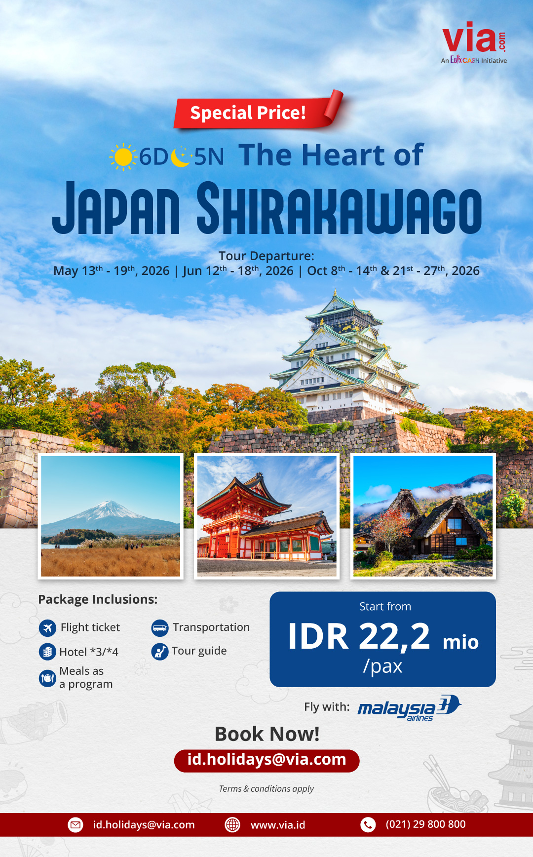 Experience the beauty of Shirakawago with Via's exclusive tour package, start from IDR 22,2 mio!