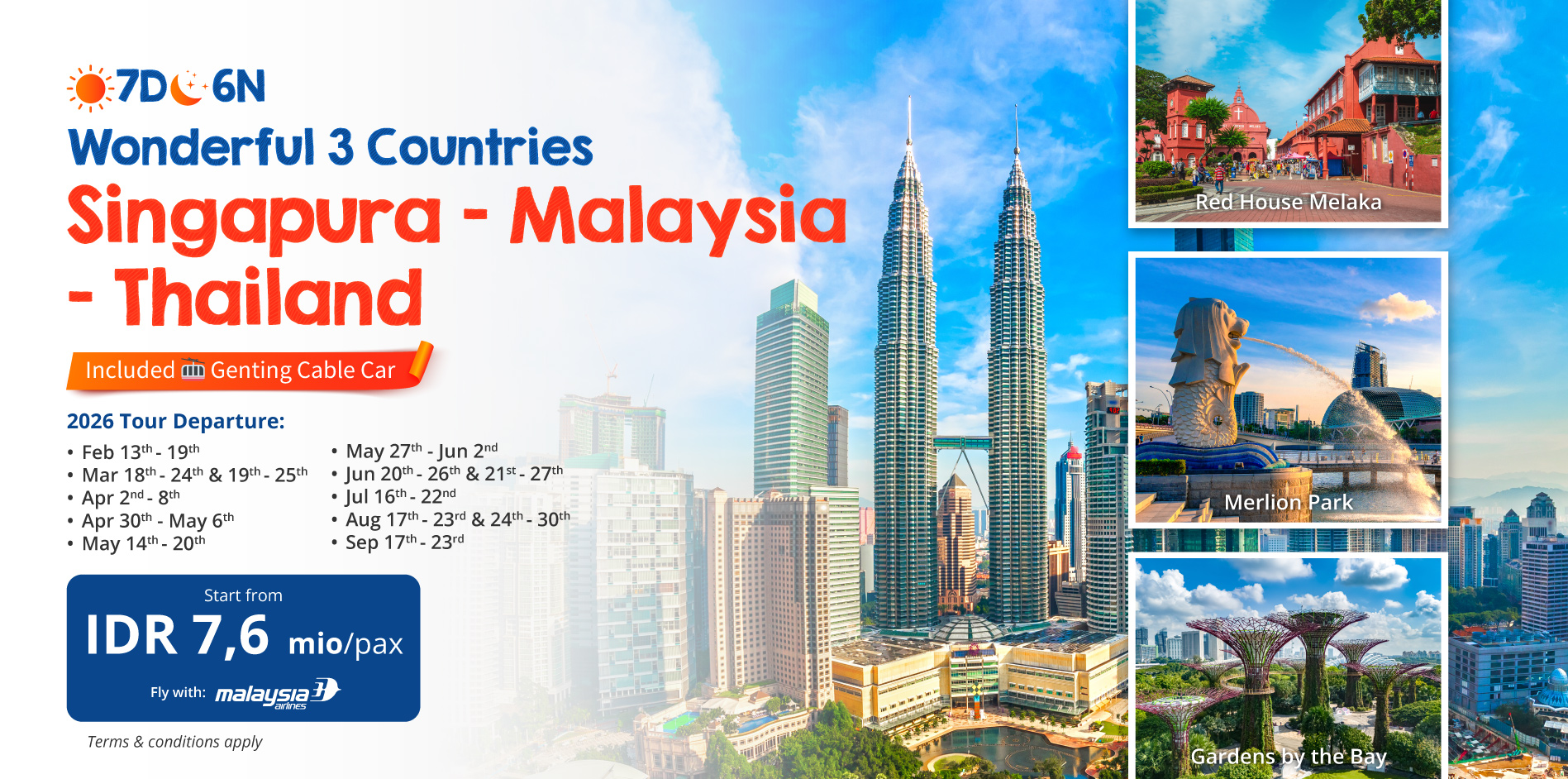 Promo7D6N Wonderful 3 Countries Singapore - Malaysia - Thailand