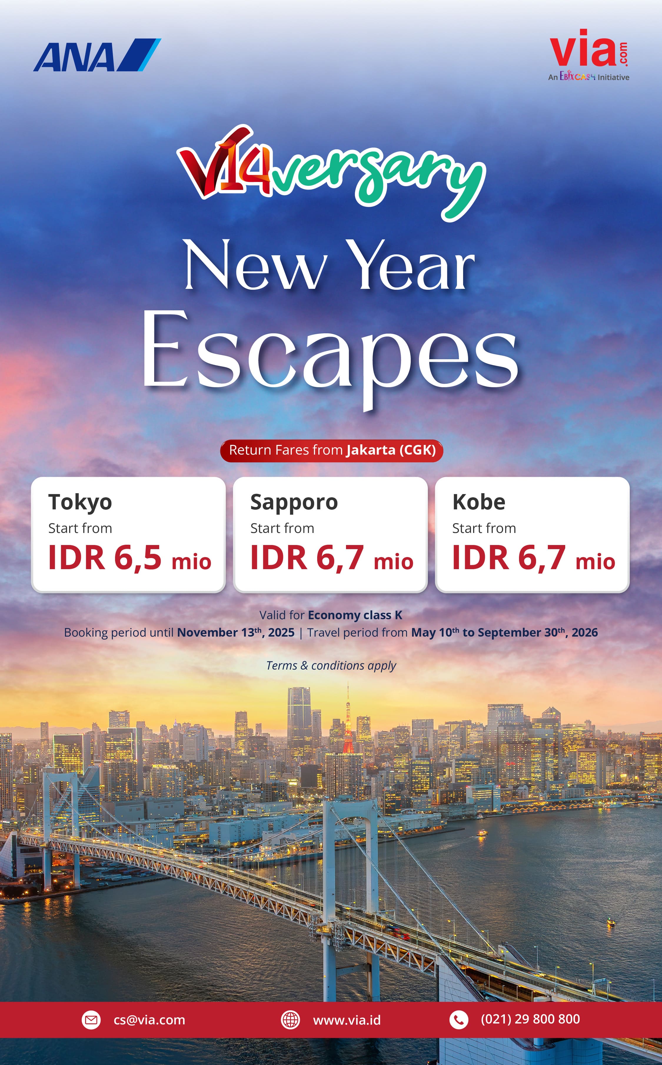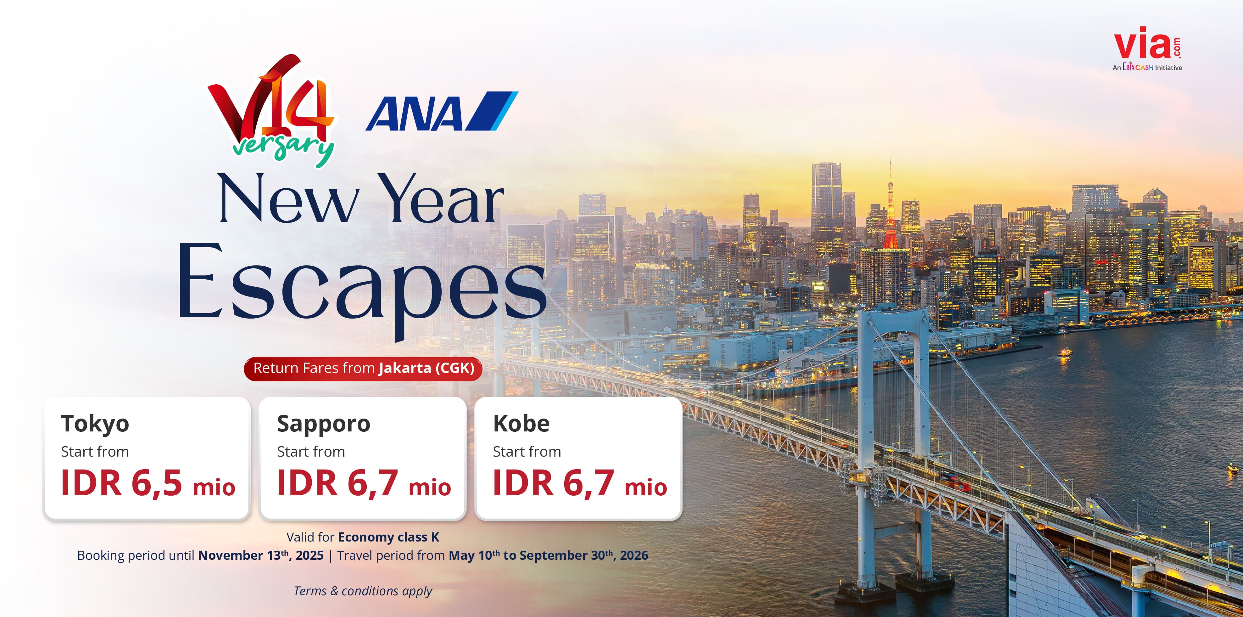 ​ Celebrate Via’s #V14versary with ANA! Fly from Jakarta to Tokyo, Kobe, or Sapporo start from just IDR 6.5 mio! ​
