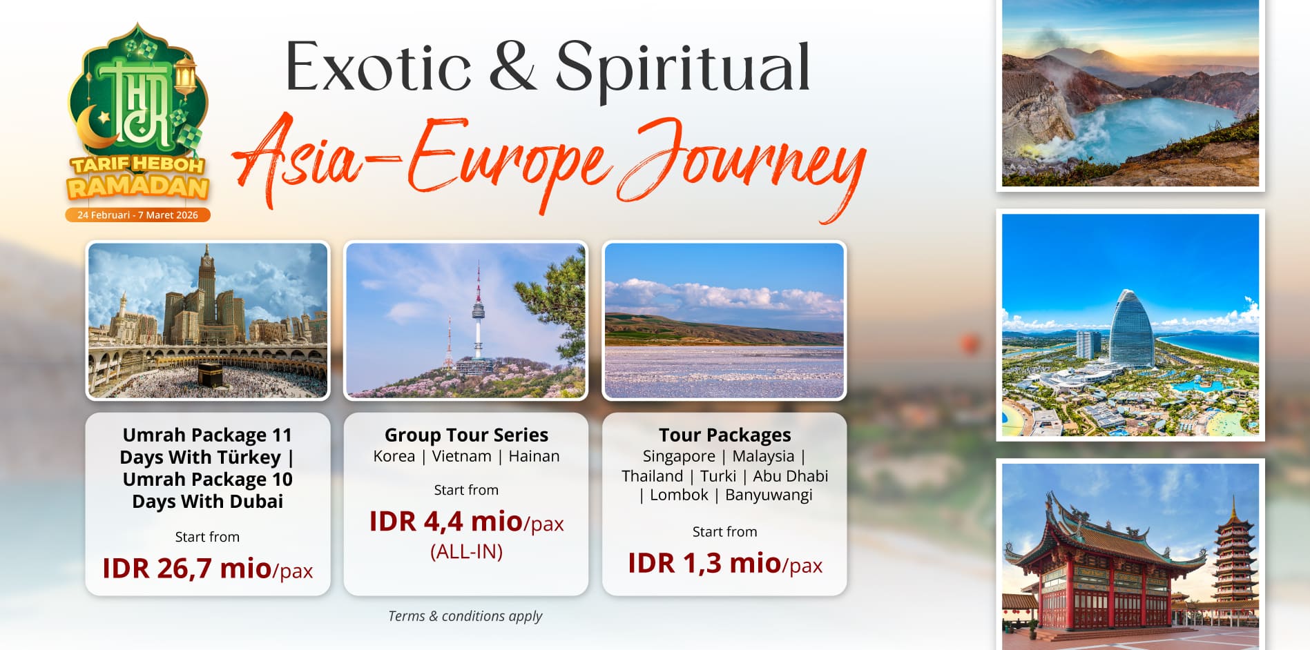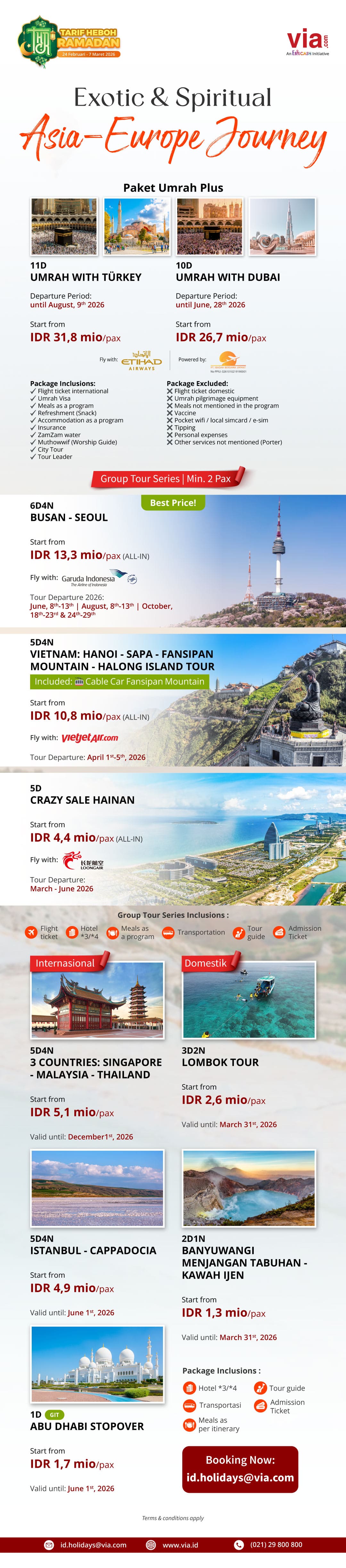 Find your journey with Via.id's THR tour package! From Umrah to leisure package, they are yours to experience.