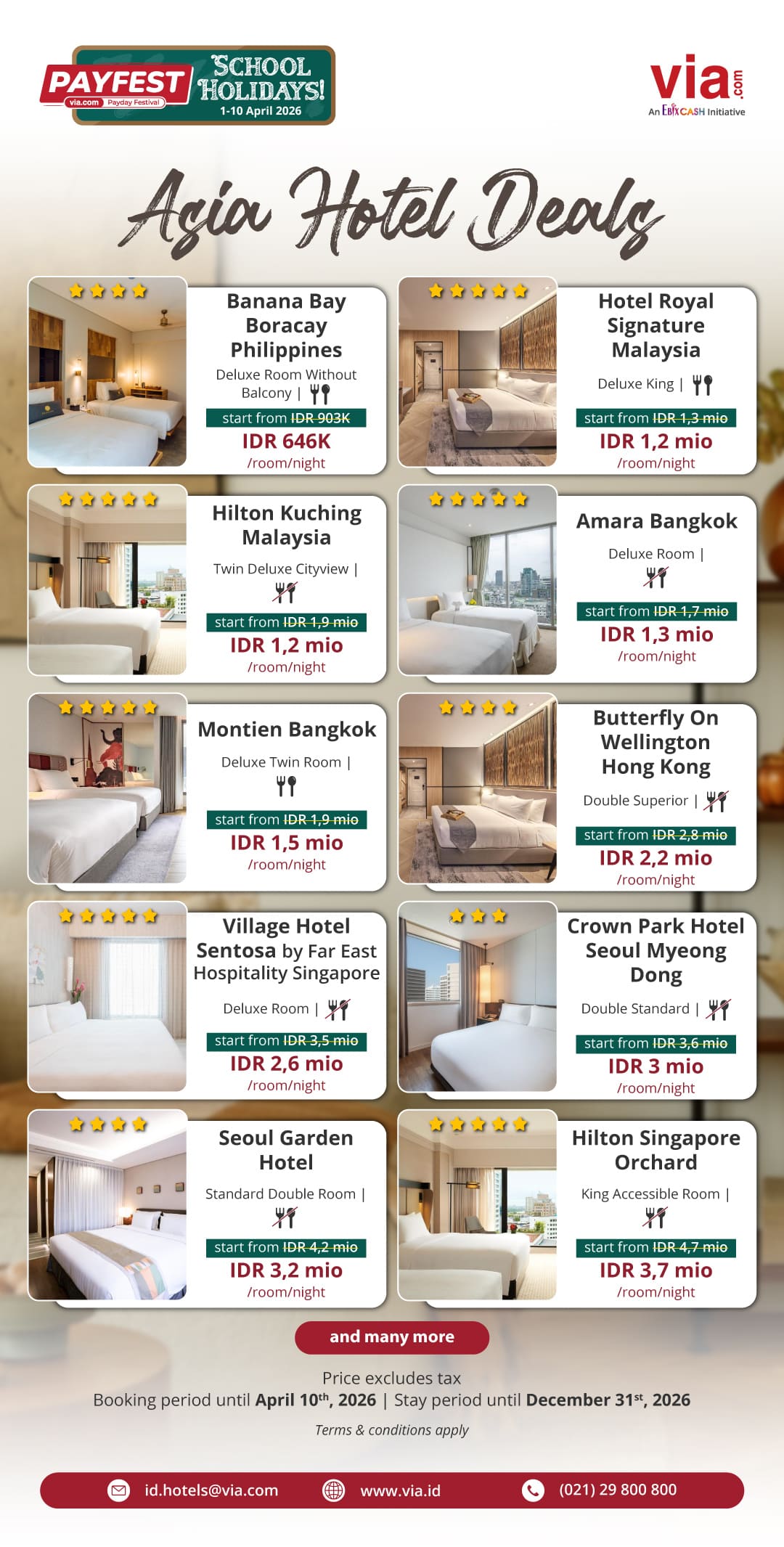 Plan your school holiday season vacation today with PAYFEST's exclusive international hotel rates!