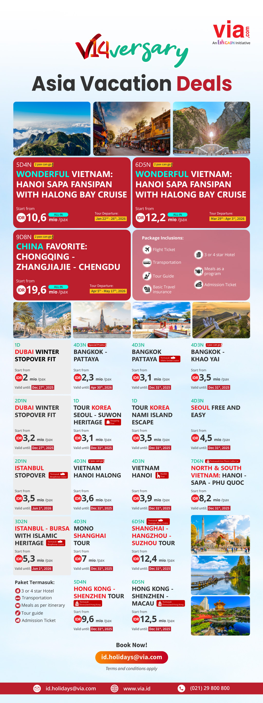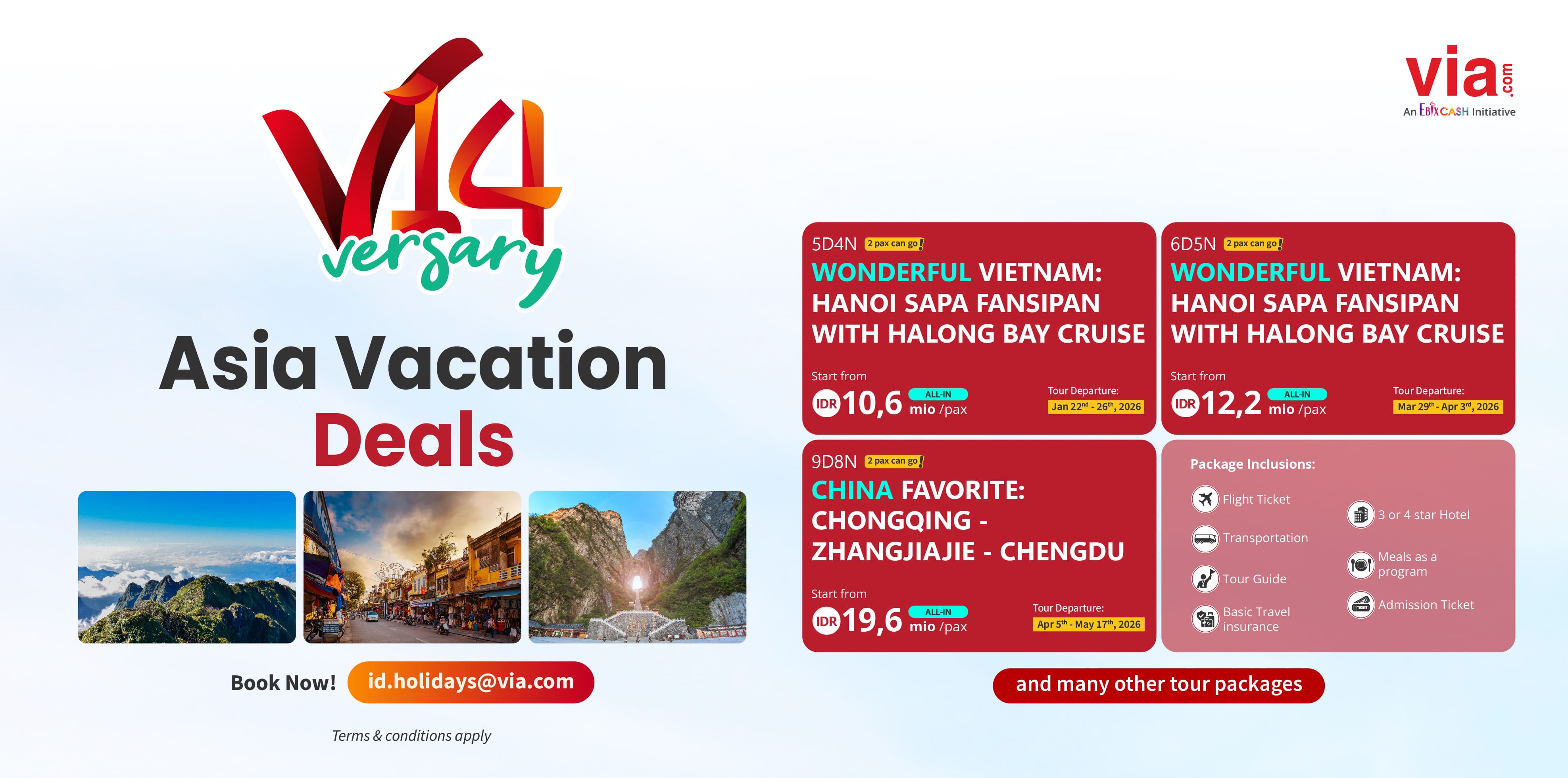 Celebrate Via’s #V14versary with exclusive discount on Asia tour packages up to IDR 1 mio OFF!
