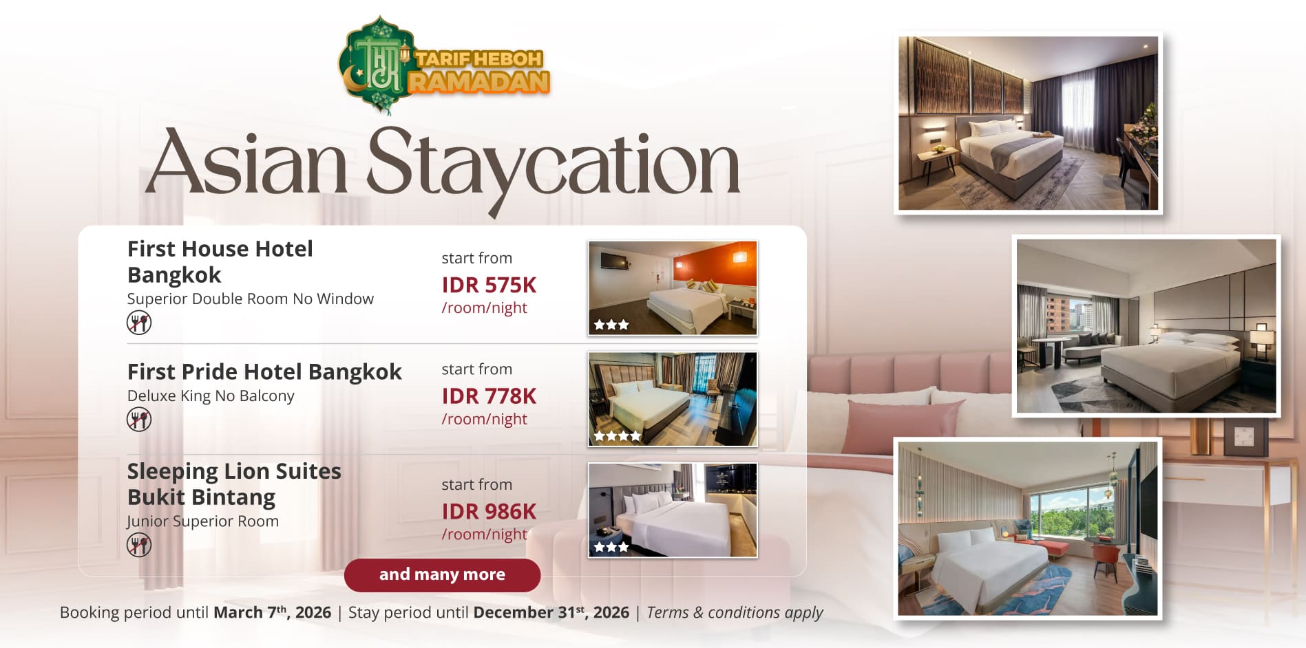Go on a staycation in Asia this Eid holiday season and enjoy special room rates start from IDR 575k/room/night!