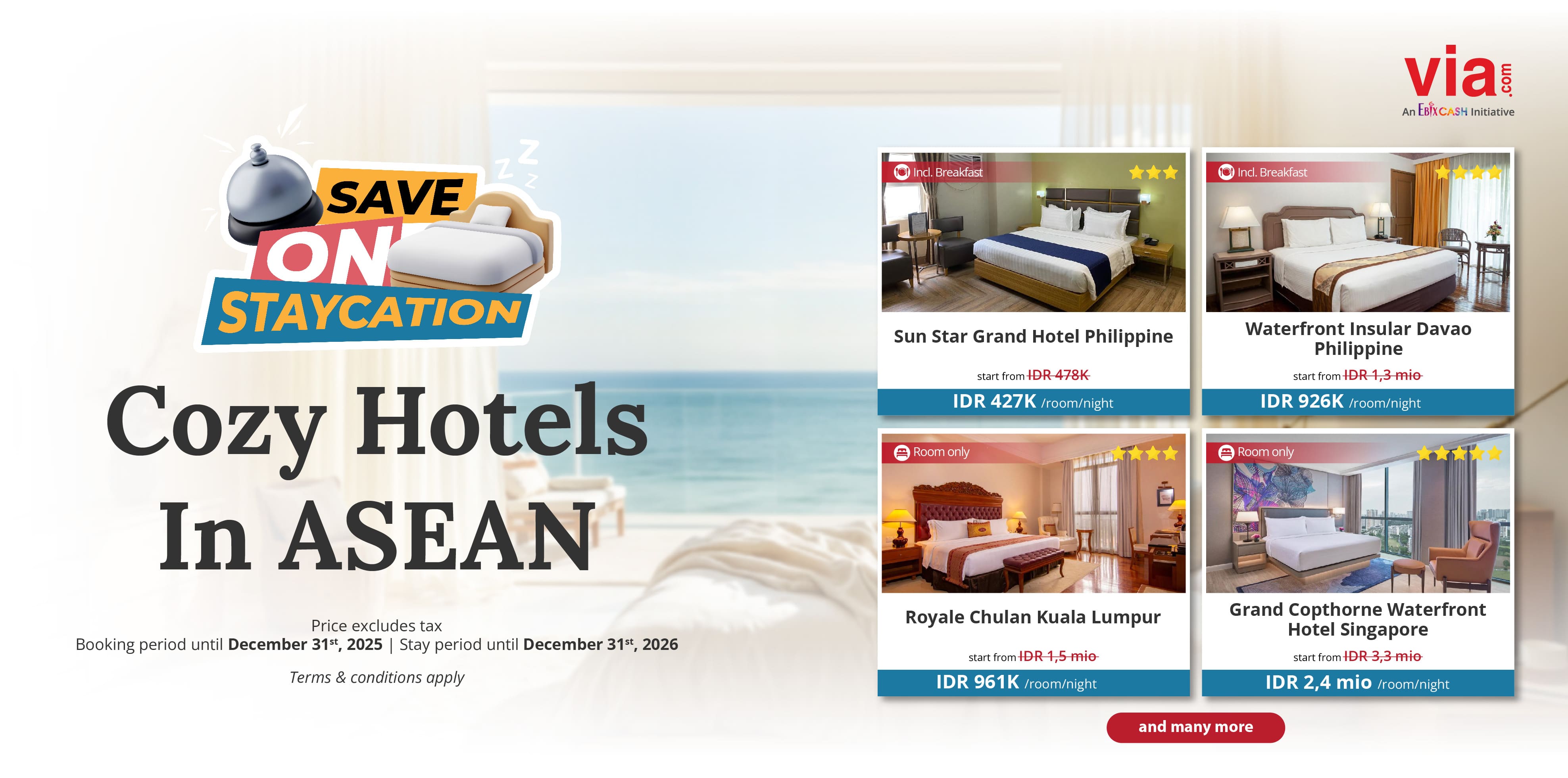 Cozy stays in Malaysia, Singapore, and Philippines start from IDR 427K/room/night only at www.via.id!