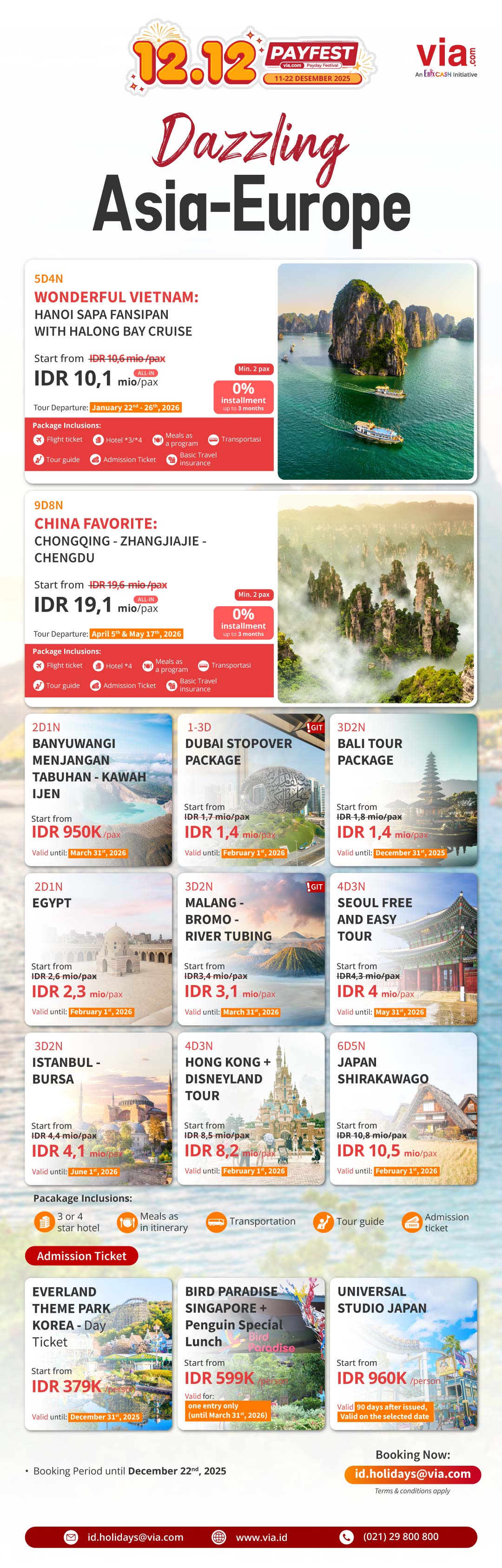 Venture the dazzling Asia & Europe with Via's exclusive tour packages!