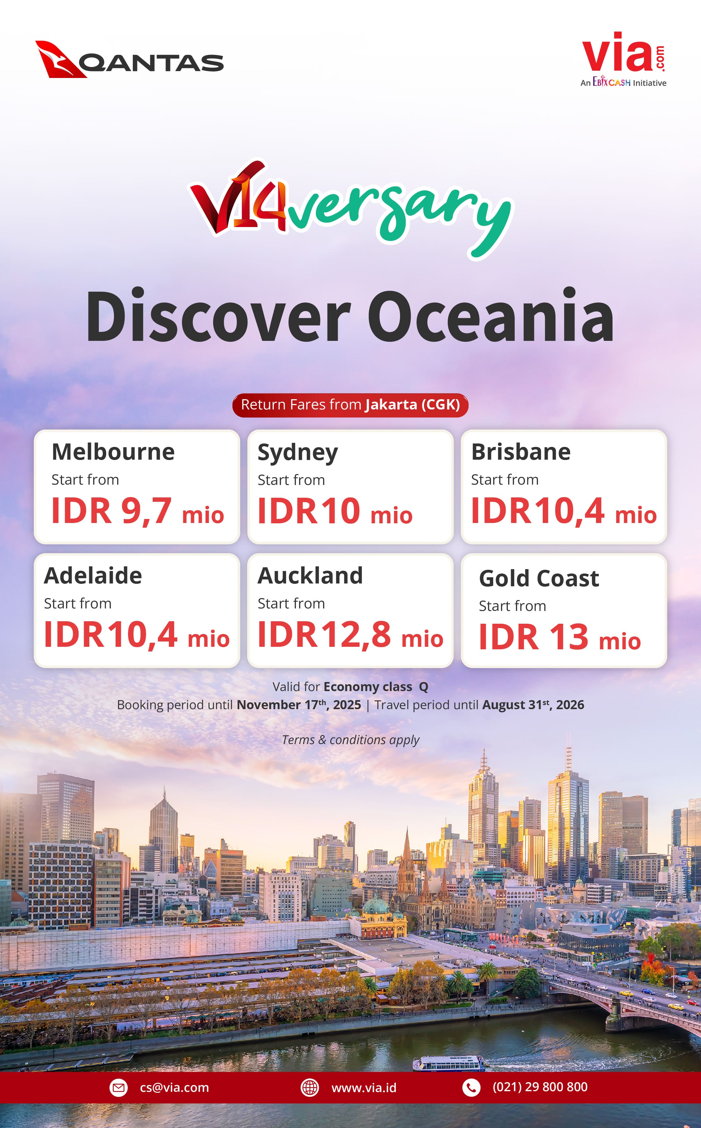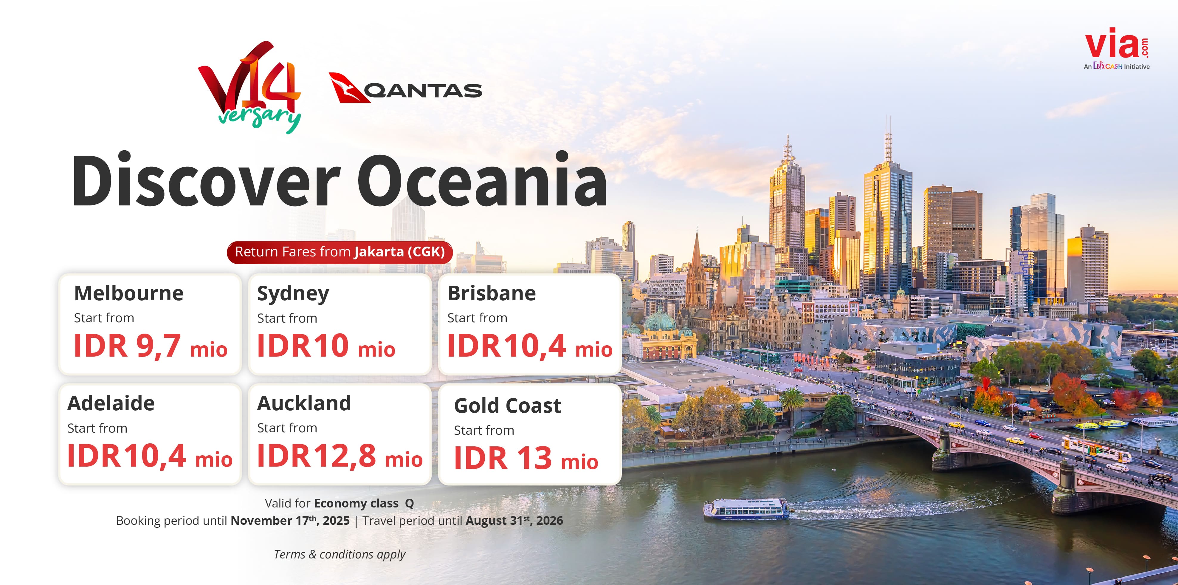 ​ Celebrate Via’s #V14versary with Qantas! Fly to Sydney, Brisbane, Auckland and more start from IDR 9,7 mio. ​