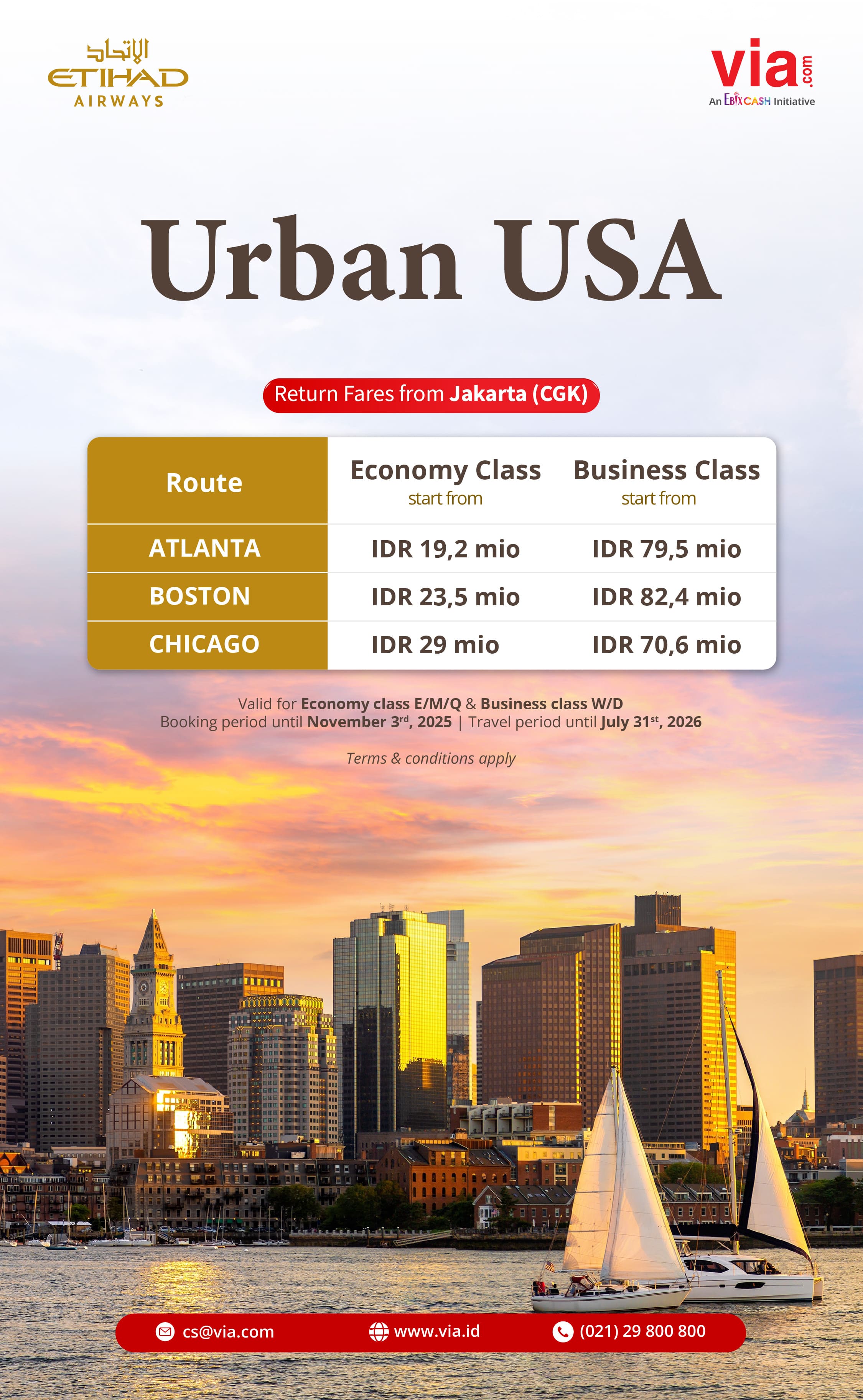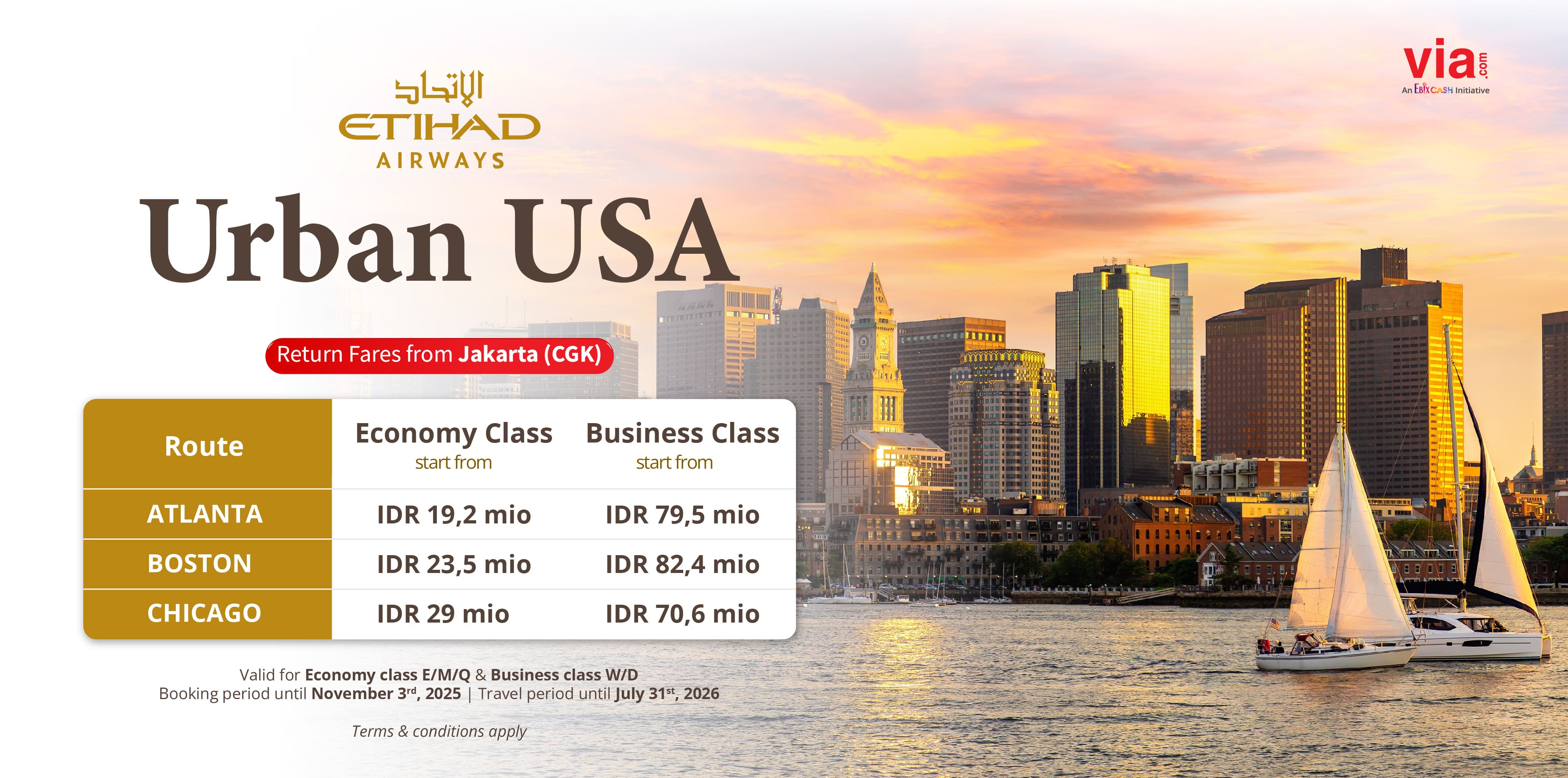 ​ Three amazing cities, one world-class airline. Discover Atlanta, Chicago & Boston with Etihad start from IDR 19,2 mio!