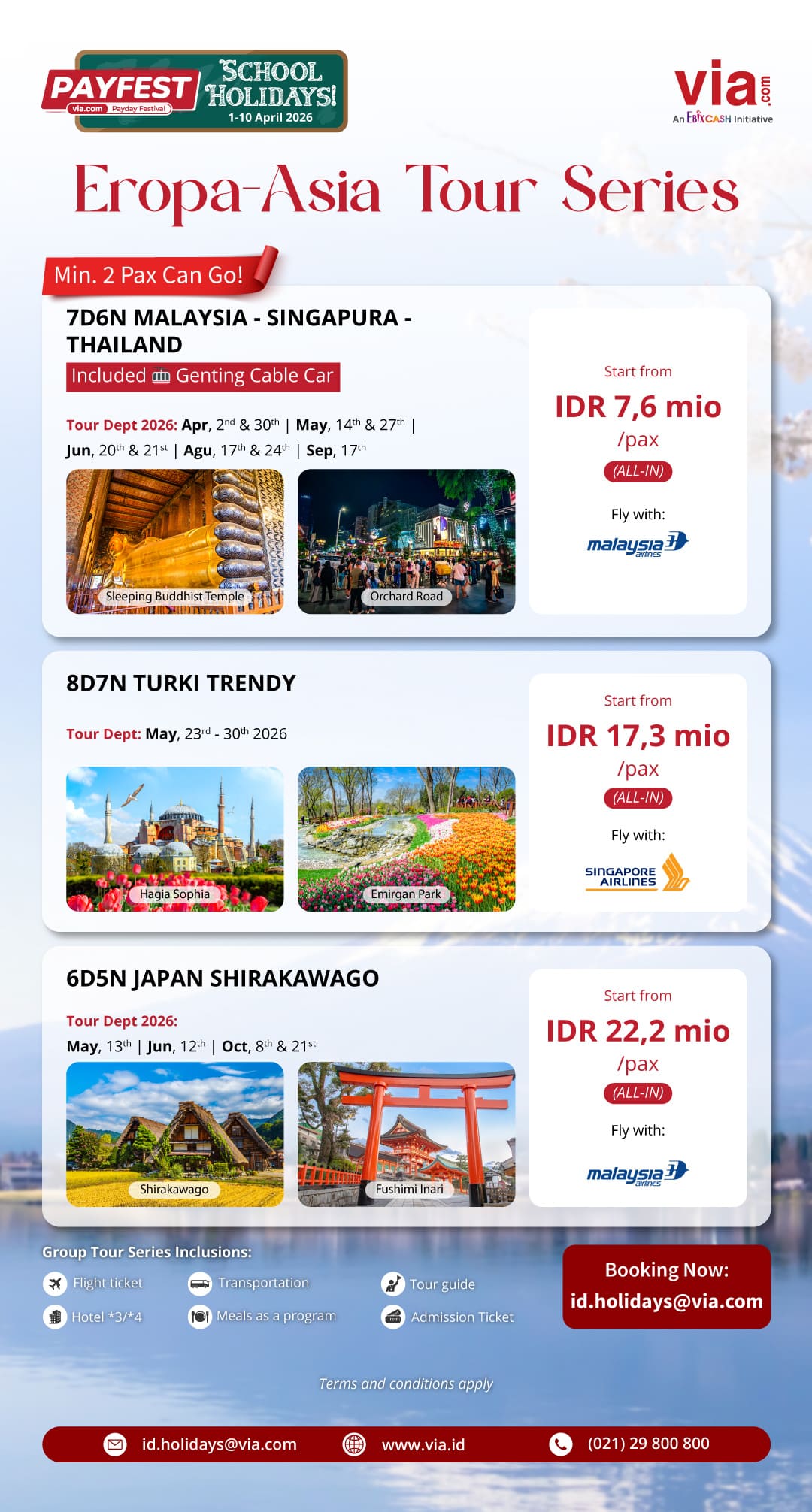 Elevate your school holidays vacation with Via.id tour series! Start from IDR 7,6 mio/pax.