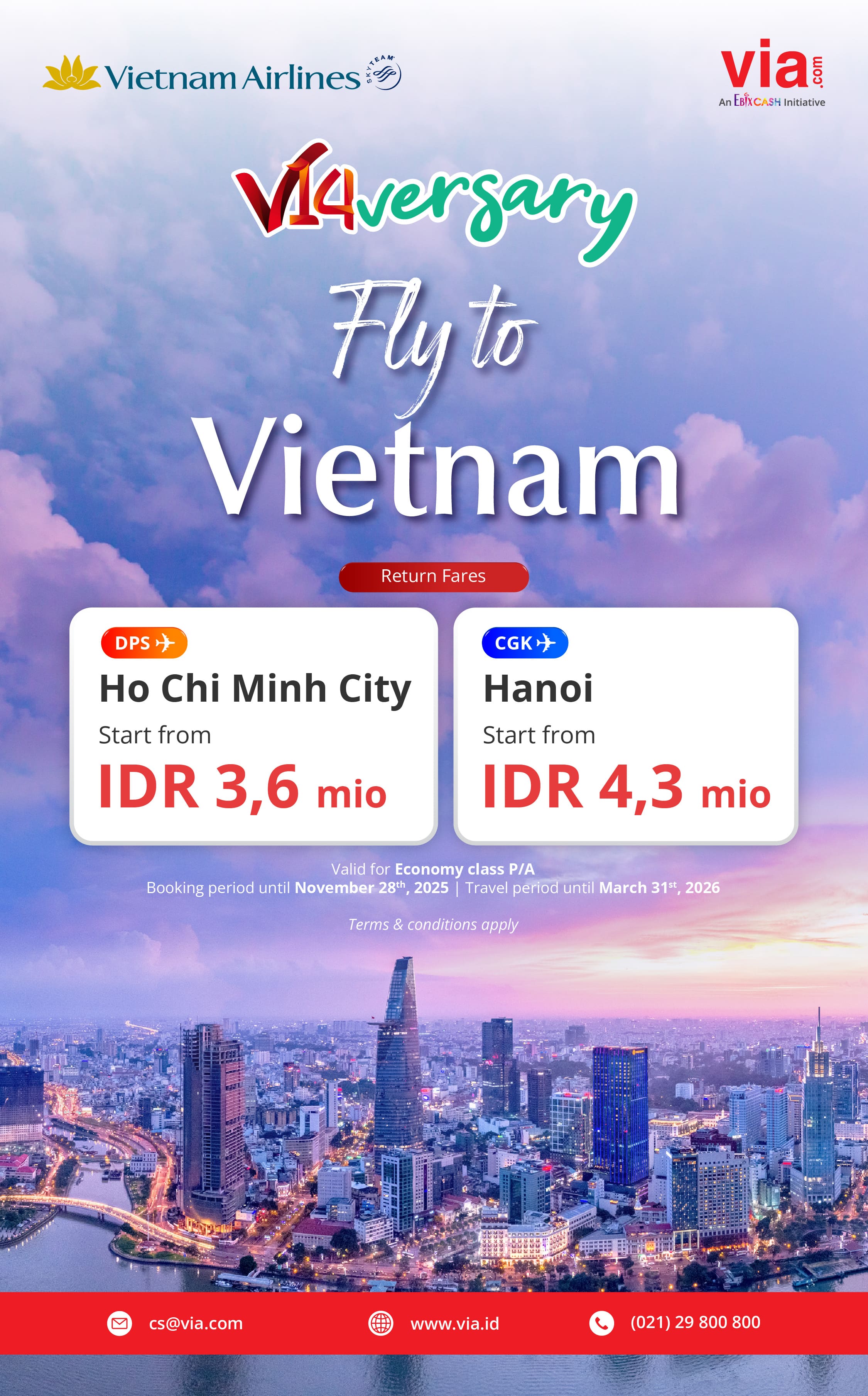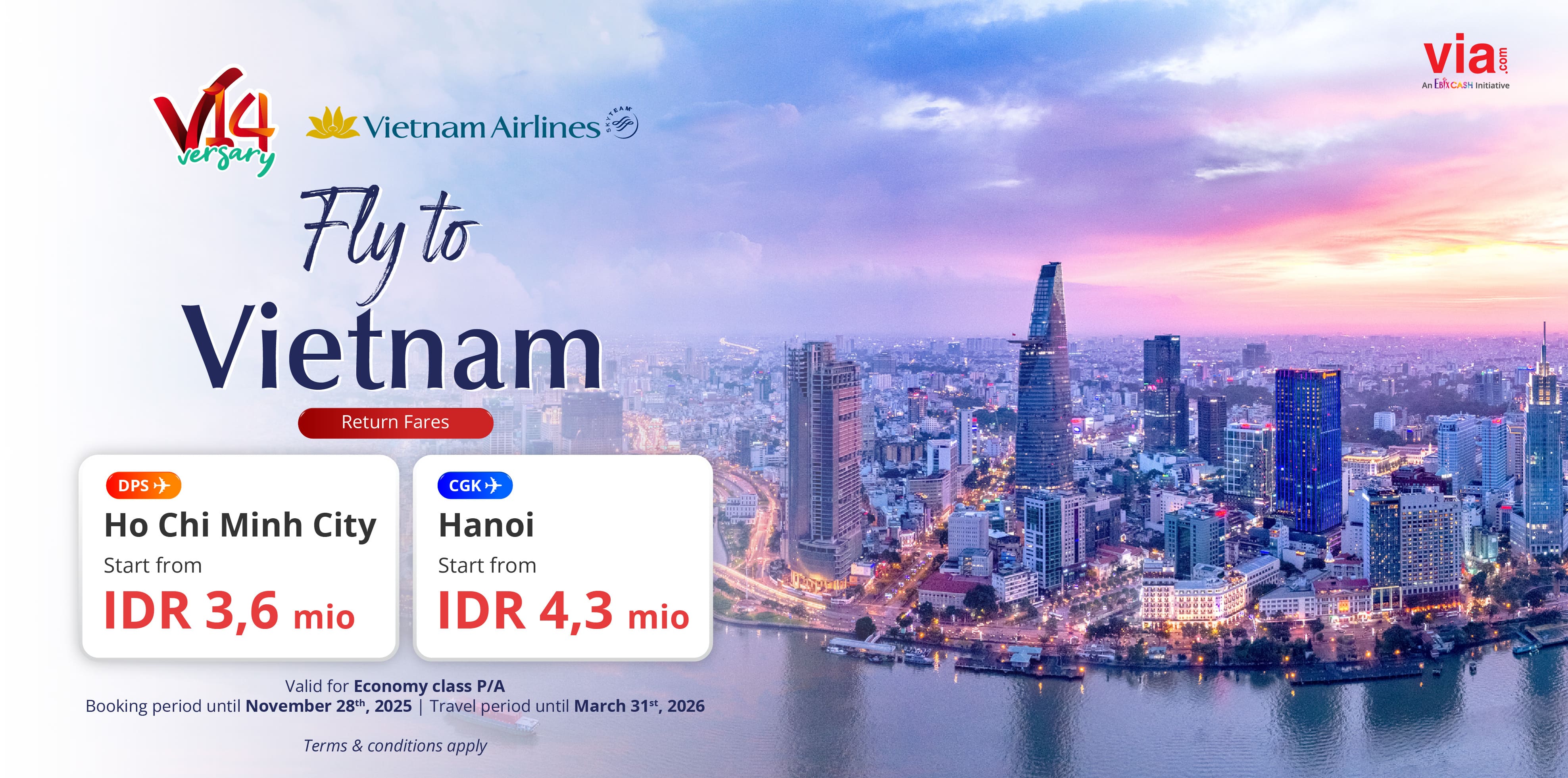 ​ Celebrate Via’s #V14versary with Vietnam Airlines! Fly to Hanoi and Ho Chi Minh city start from IDR 3,6 mio. ​