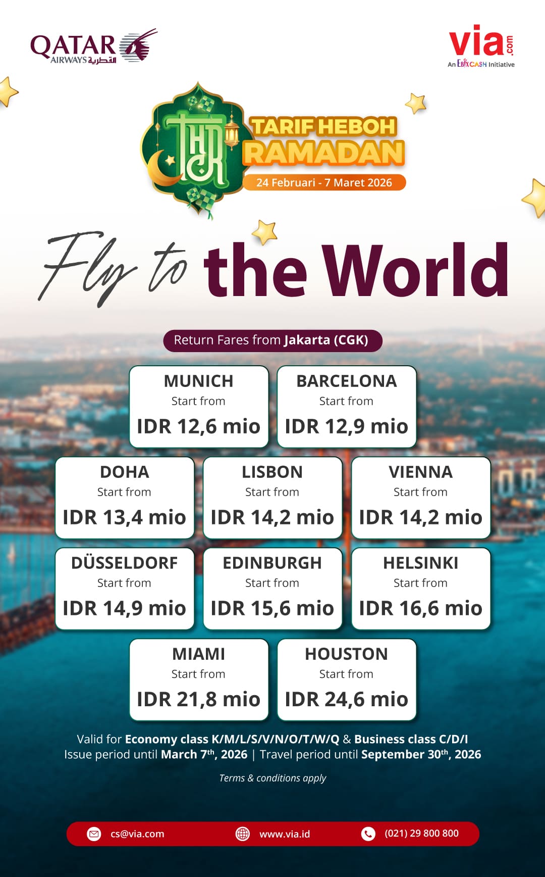 1. Promo valid for Economy class K/M/L/S/V/N/O/T/W & Business class C/D/I.