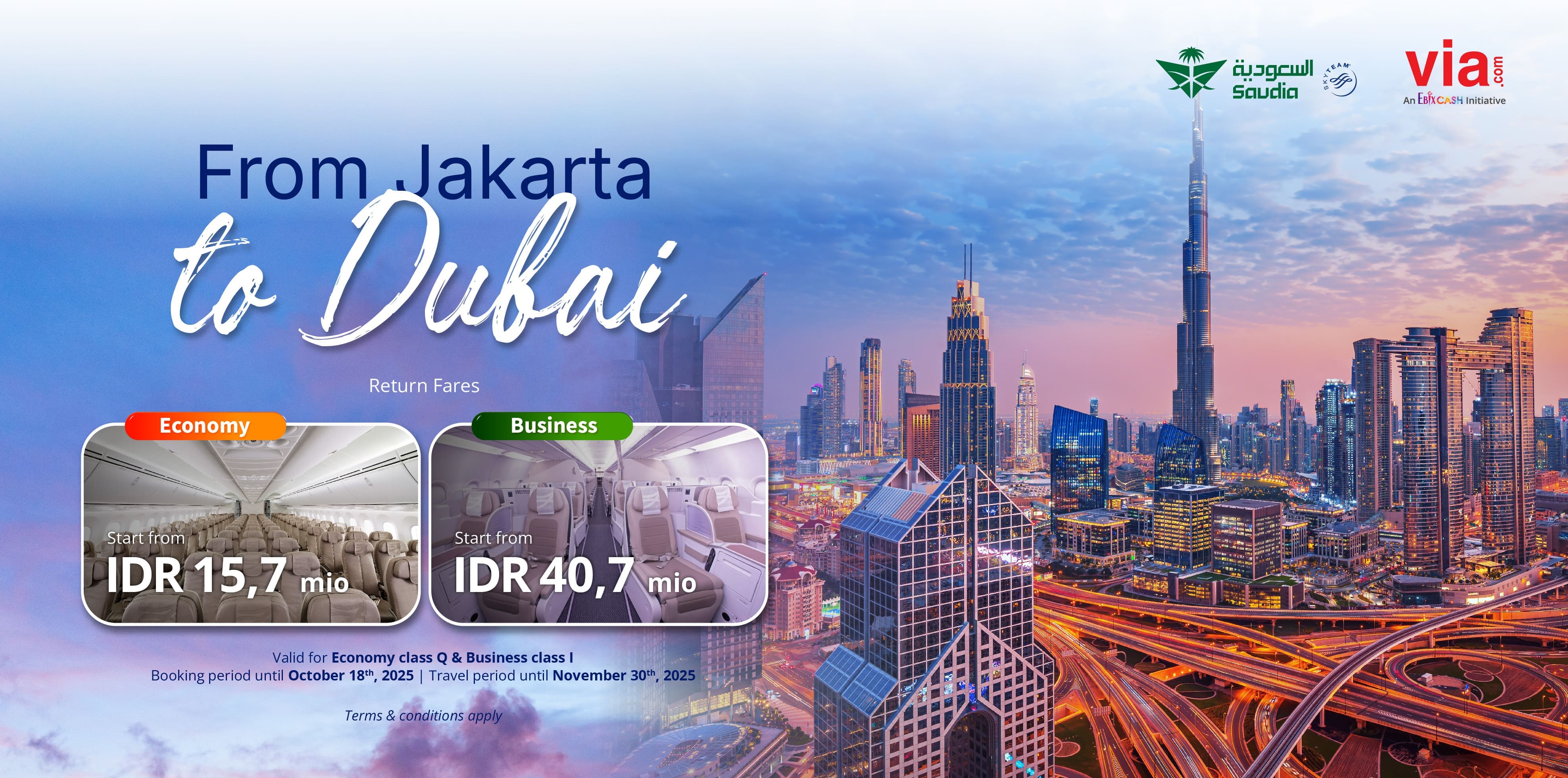 ​ Fly from Jakarta to Dubai in five star comfort, start from IDR 15,7 mio (return)!