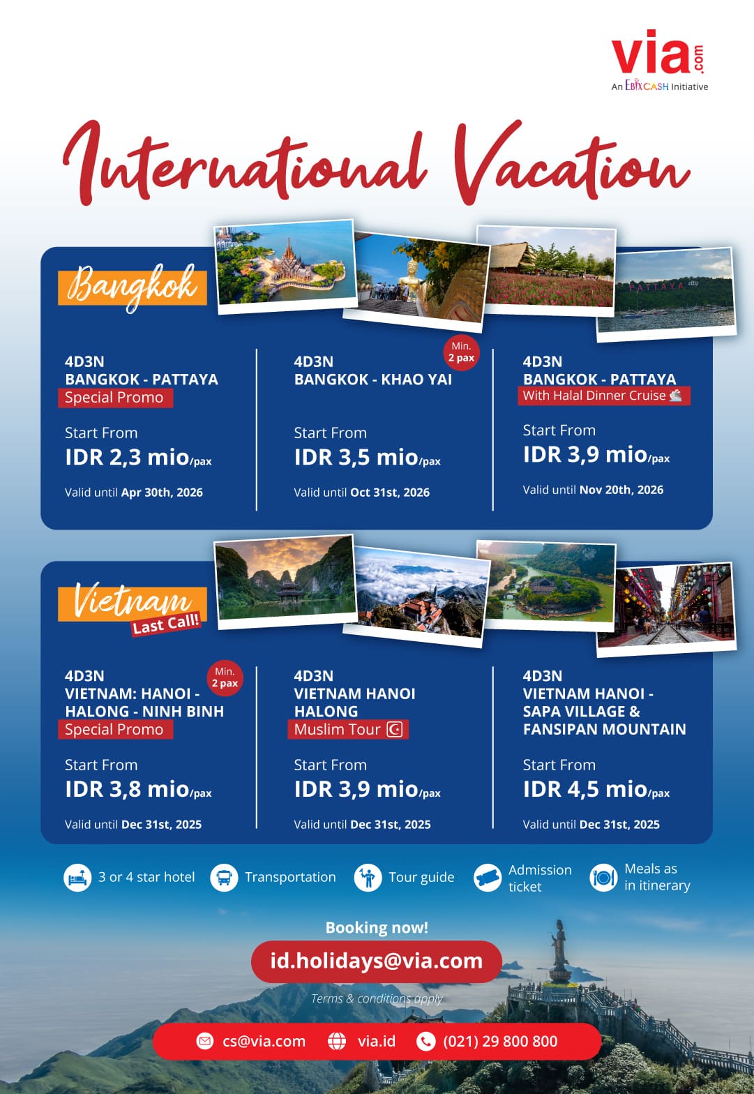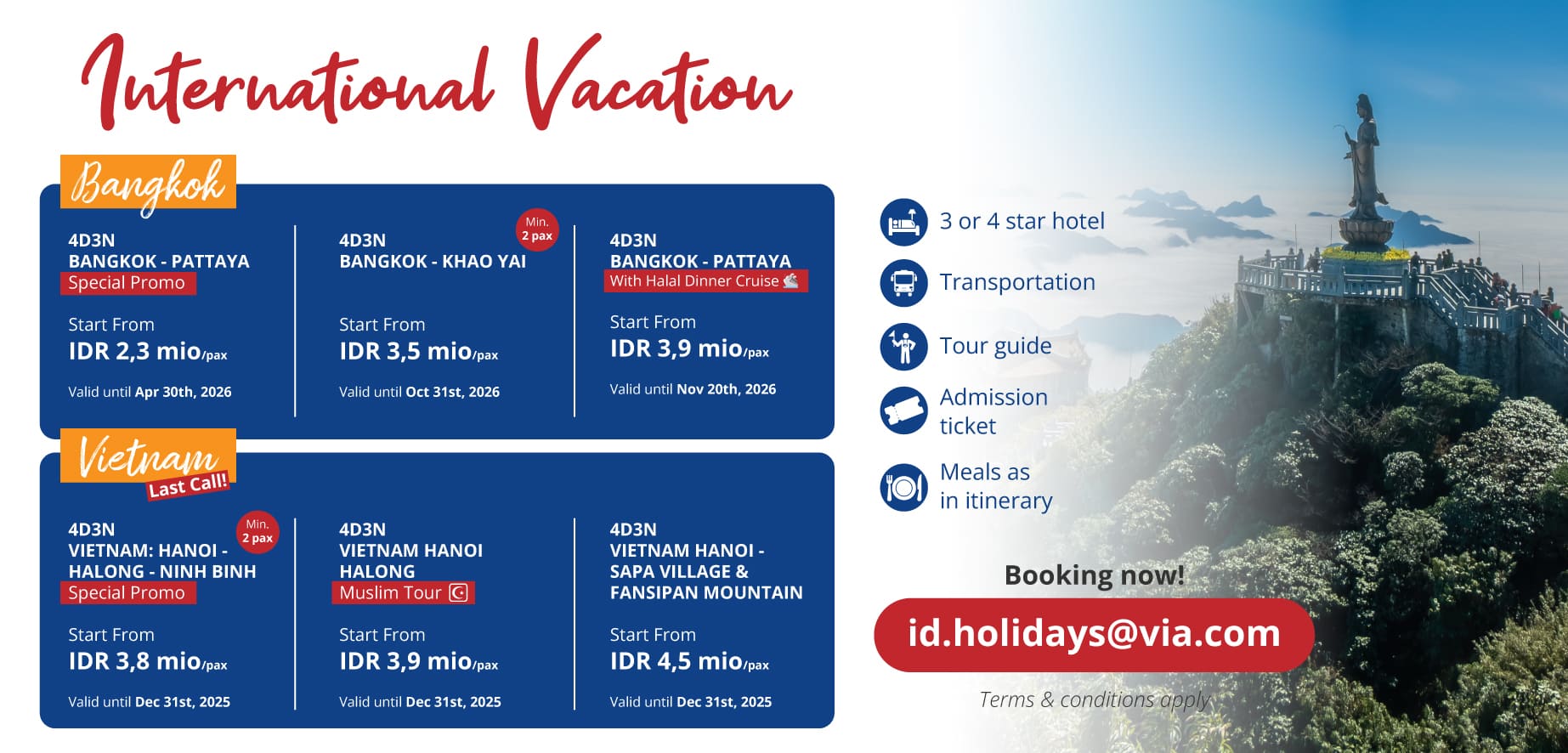 Enjoy international vacation with special tour packages from Via.id, start from IDR 2,3 mio!