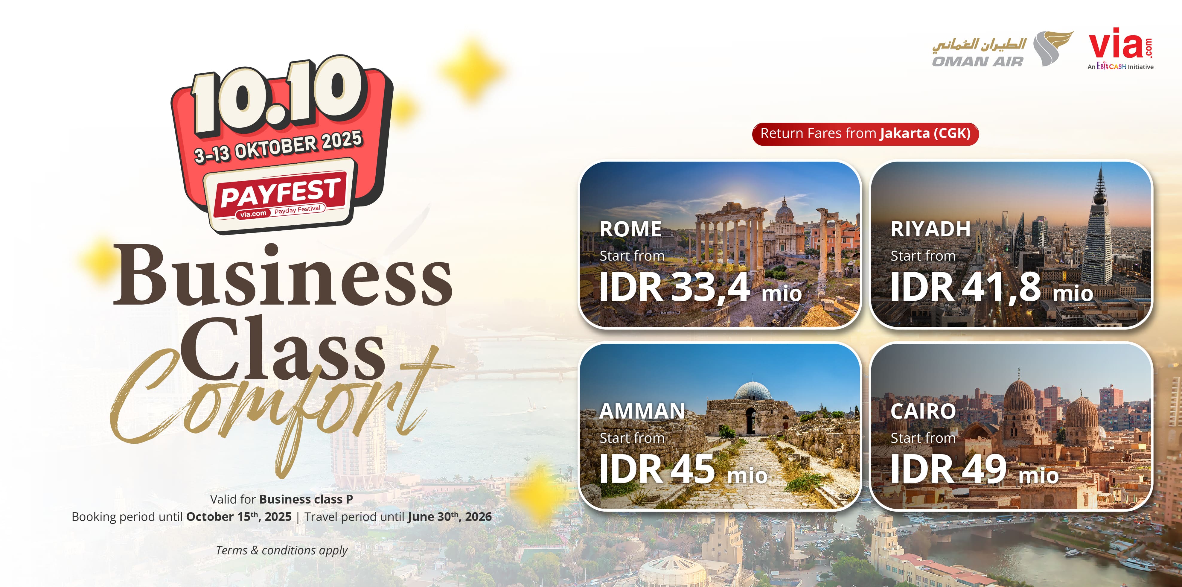 Promo Oman Air Business Class Comfort | PAYFEST 10.10