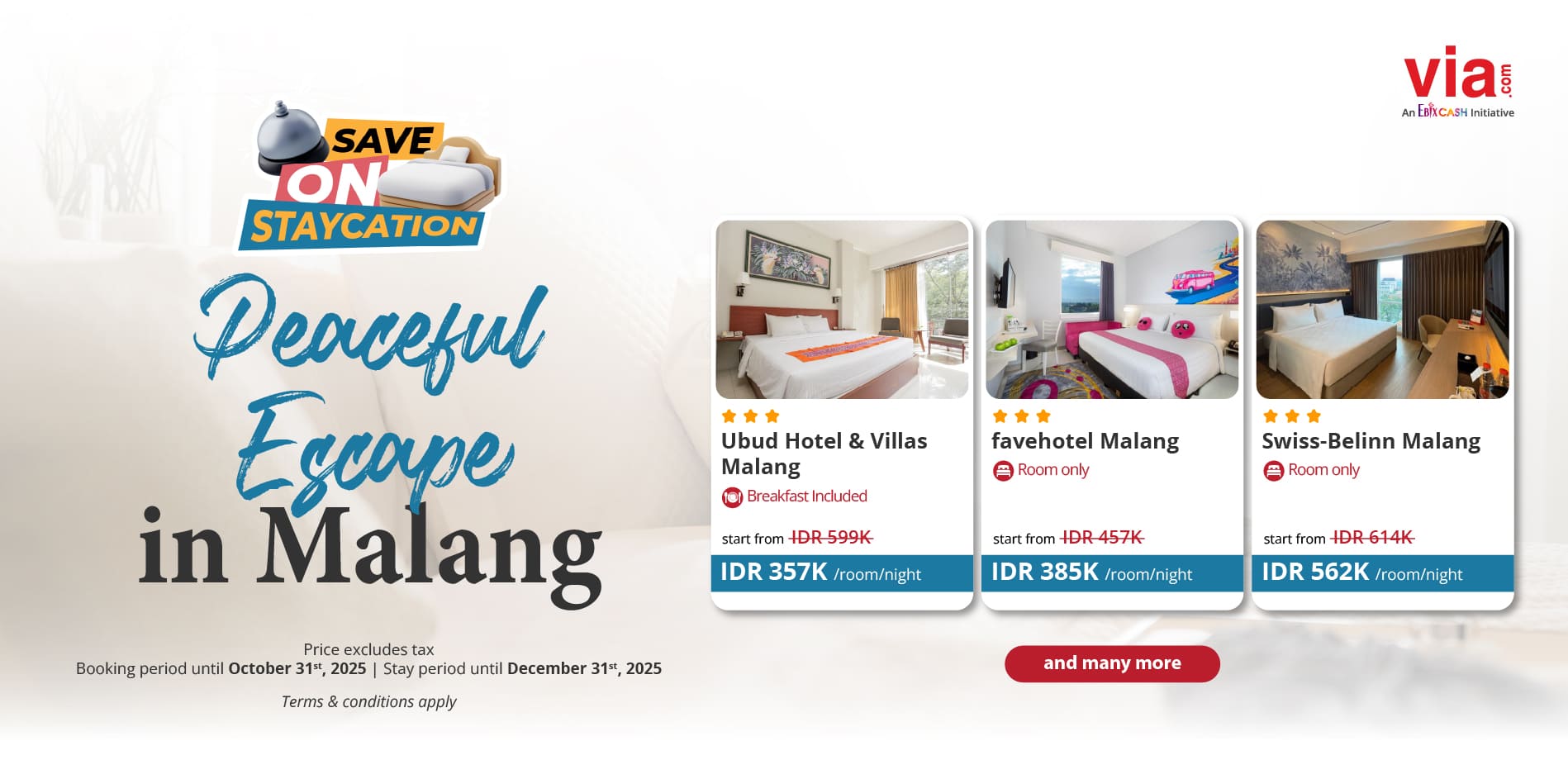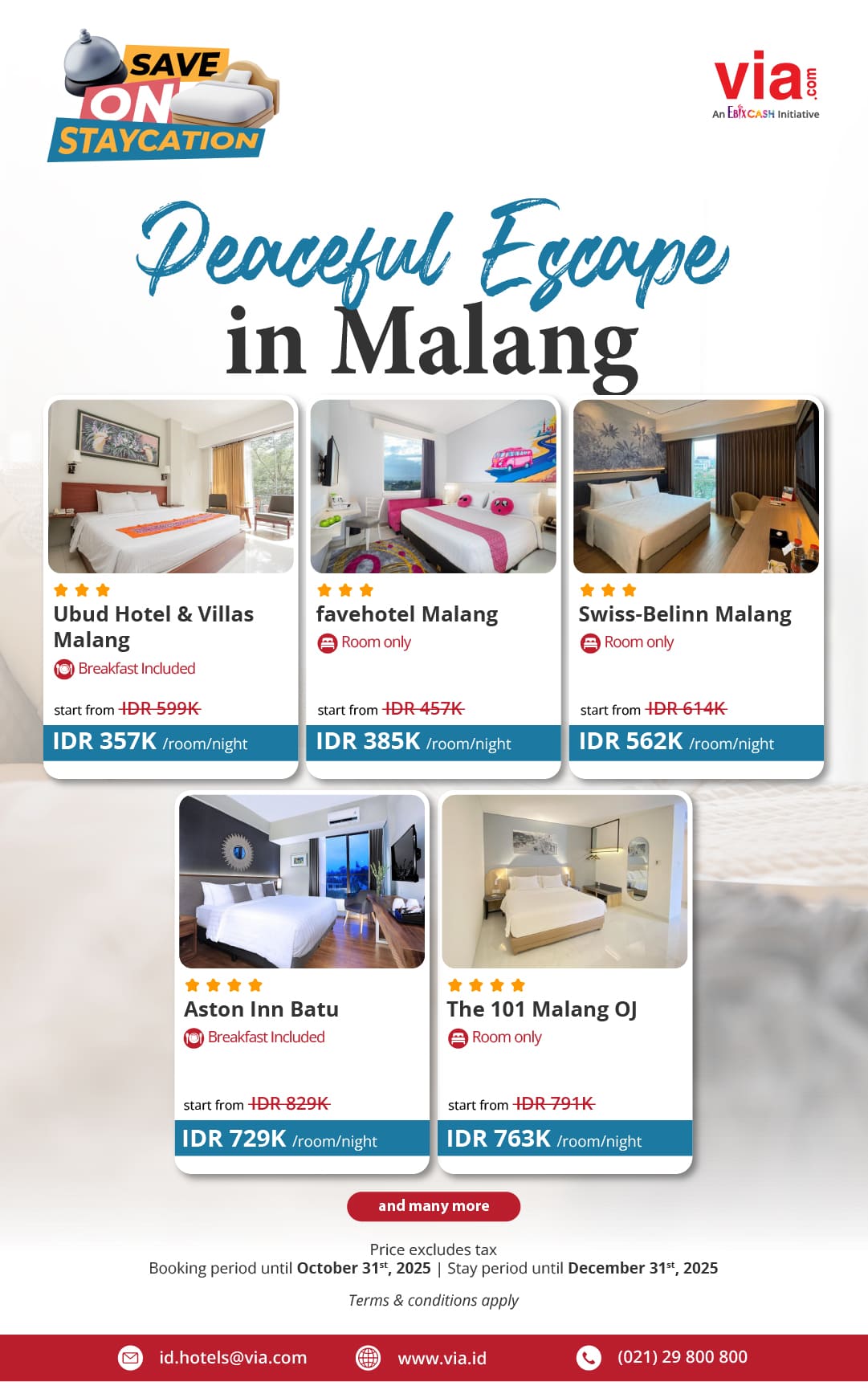 A night of peaceful escape in Malang start from IDR 357K/room/night only at www.via.id!