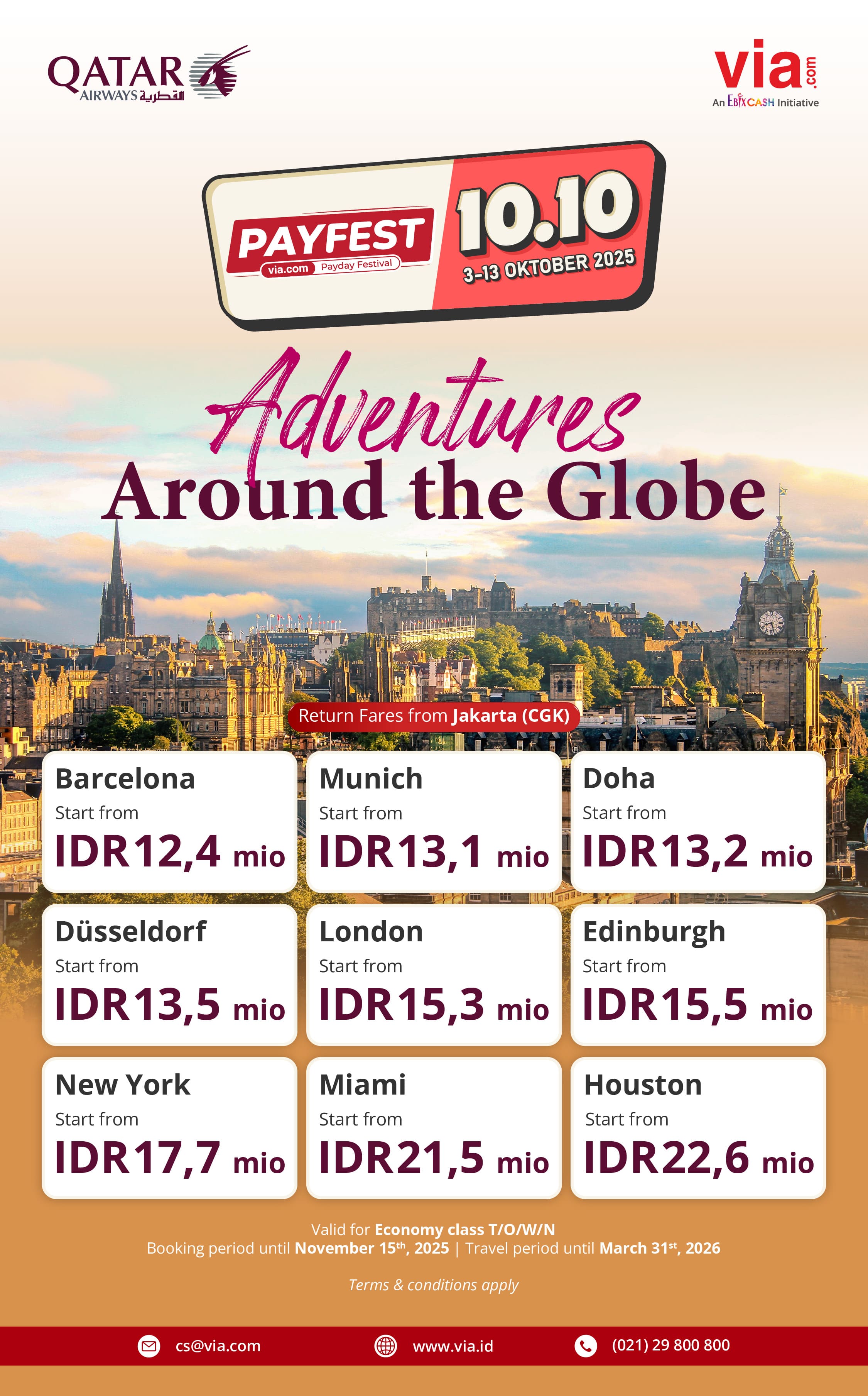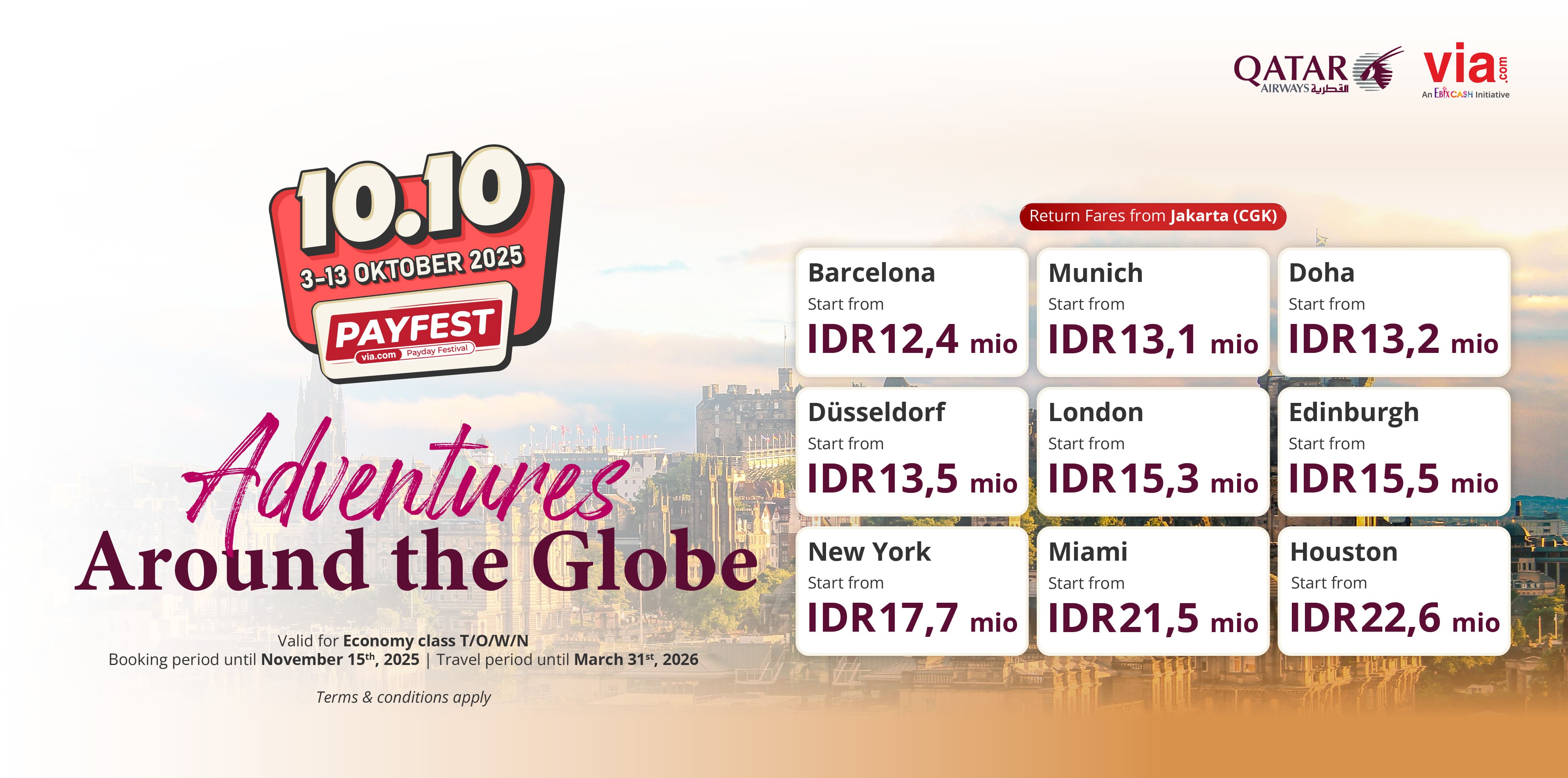 ​ Fly anywhere in the world with Qatar Airways with PAYFEST 10.10 special fares start from IDR 12,4 mio! ​