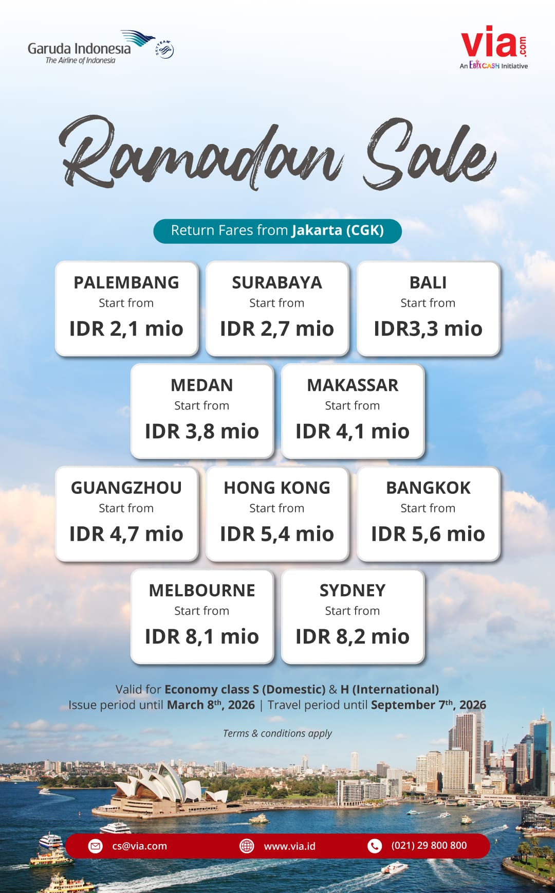 2. Promo valid for Economy class S (Domestic) & H (International).