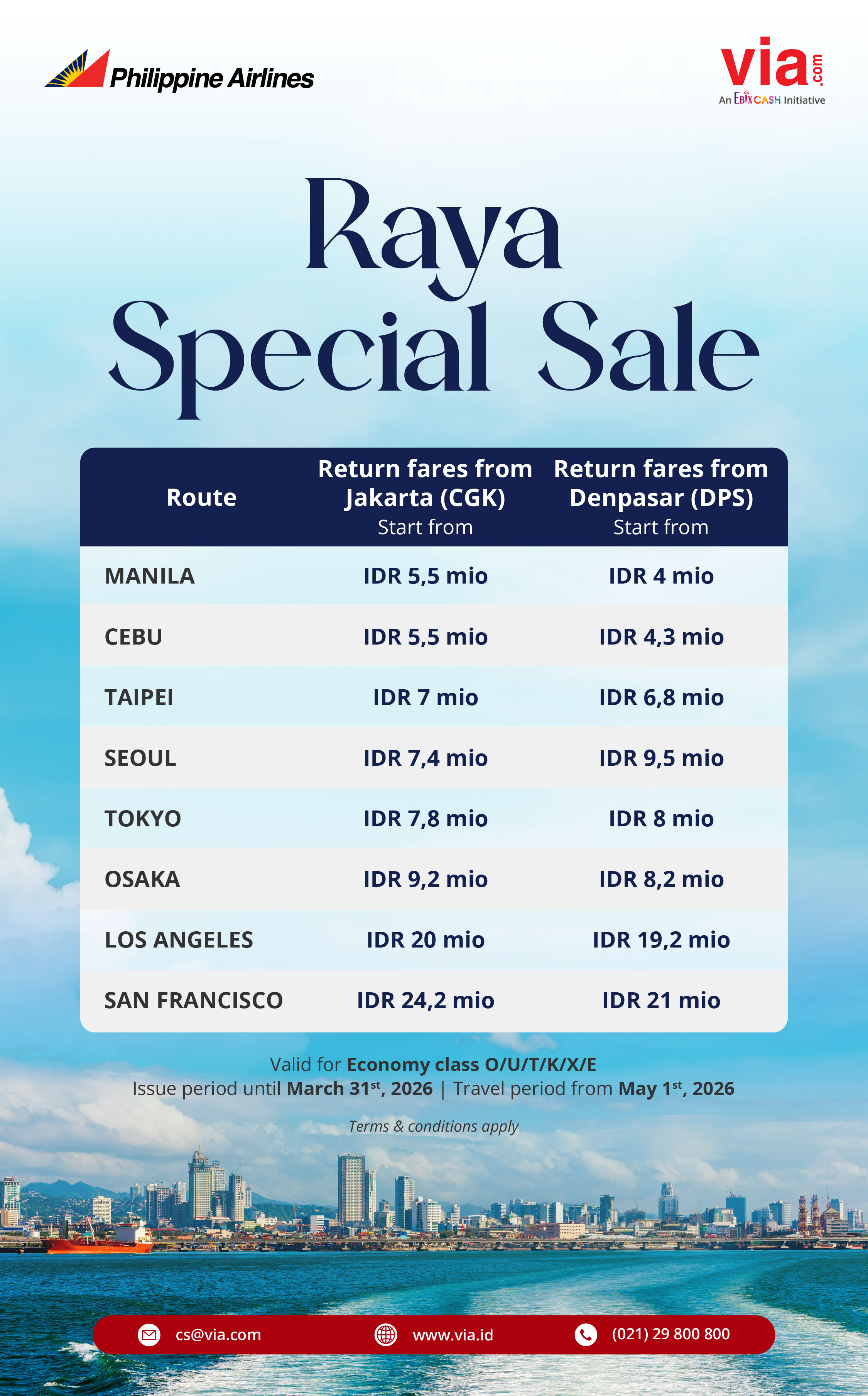 2. Promo valid for Economy class O/U/T/K/X/E.