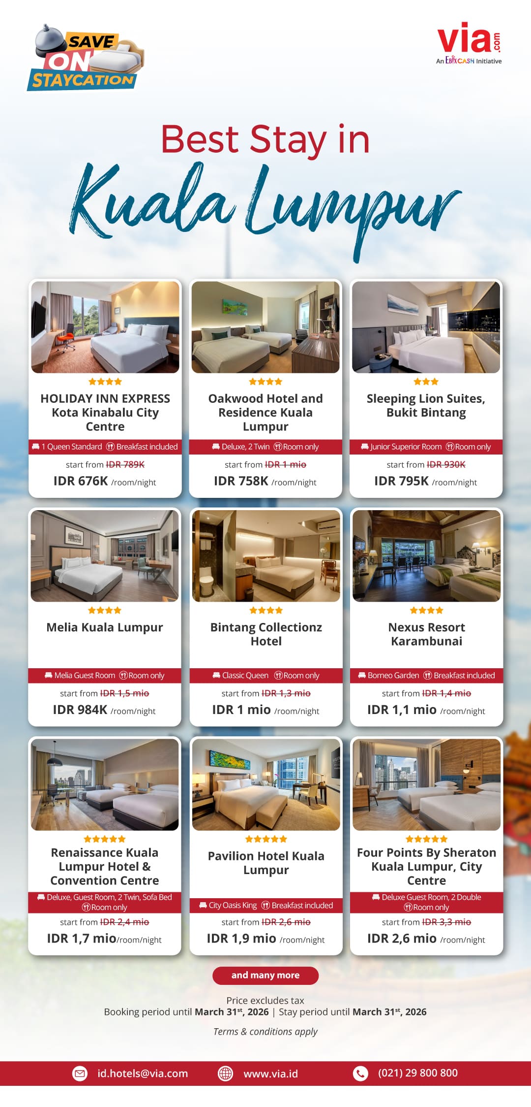 Stay in comfort in Kuala Lumpur with Via.id's hottest hotel deals, start from IDR 676K/room/night!