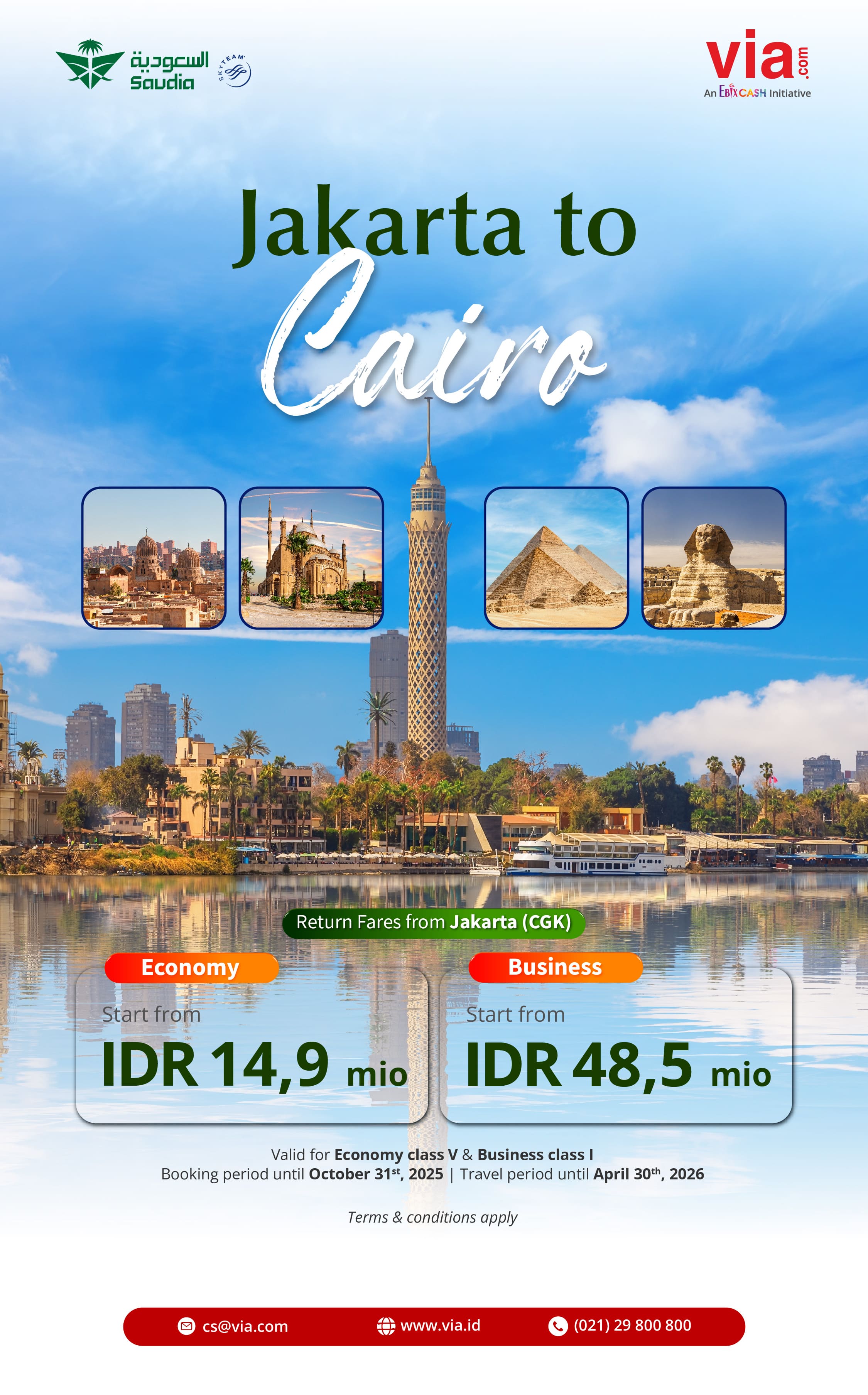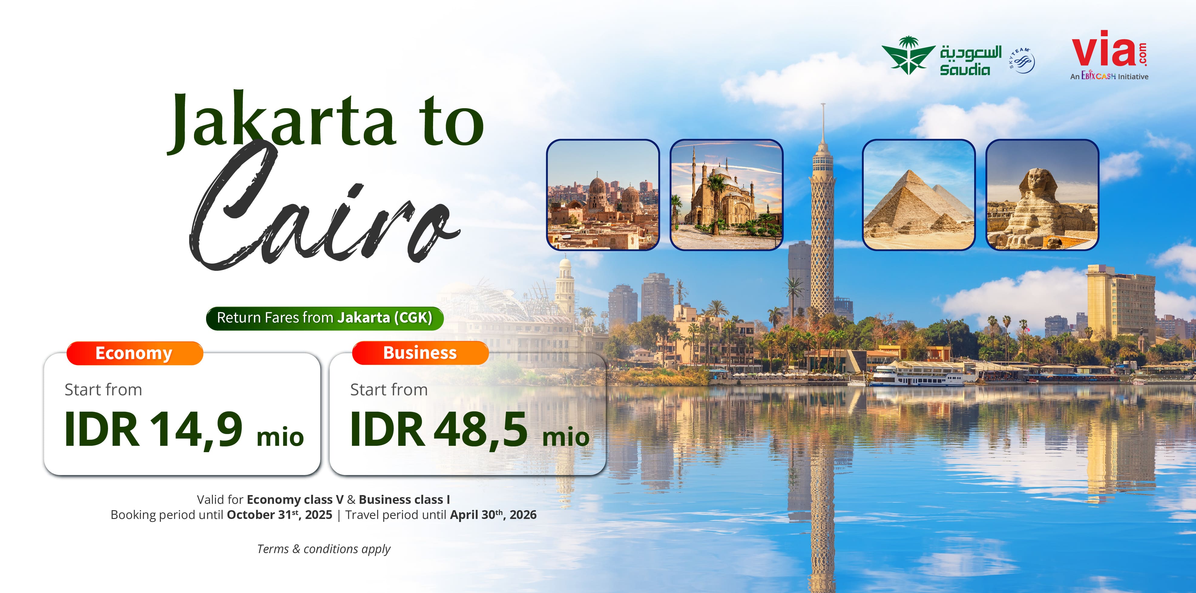 ​ Fly in comfort with Saudia to Cairo start from IDR 14,9 mio (Economy) & IDR48,5 mio (Business)