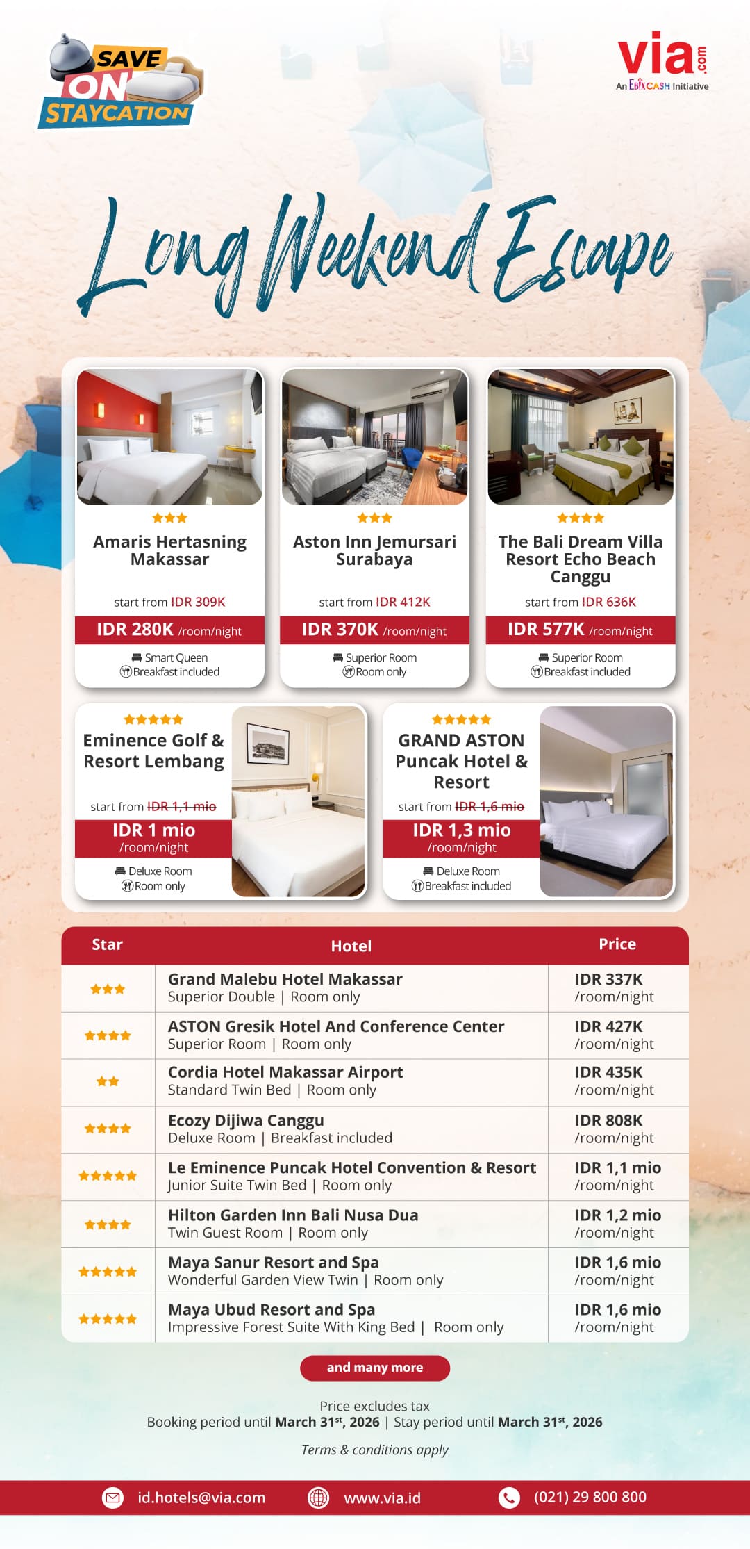 Looking for a long weekend getaway? Enjoy a cozy staycation at Indonesian domestic hotels, including Bali, Puncak, Surabaya and more! Start from IDR 280K/eoom/night