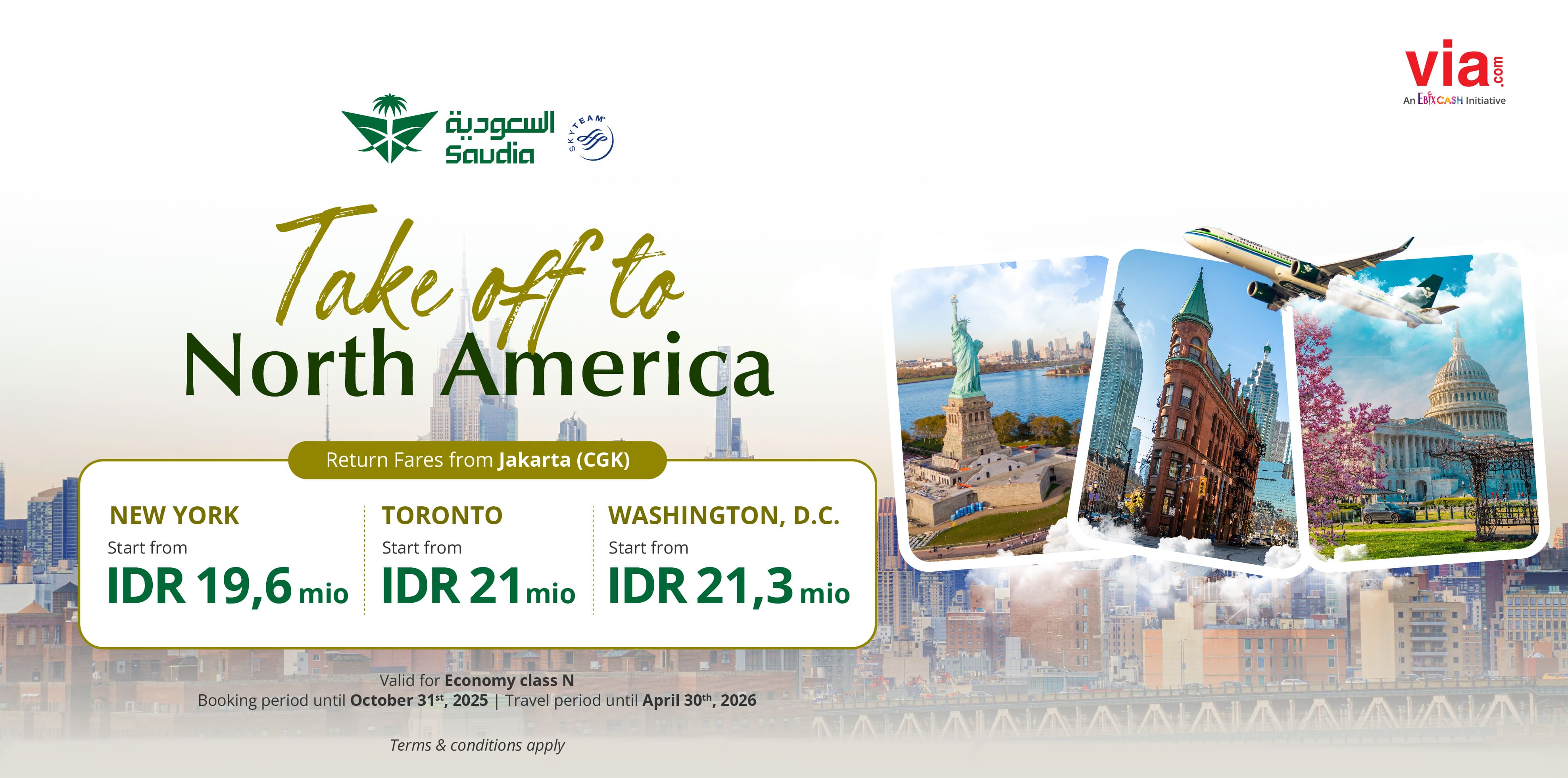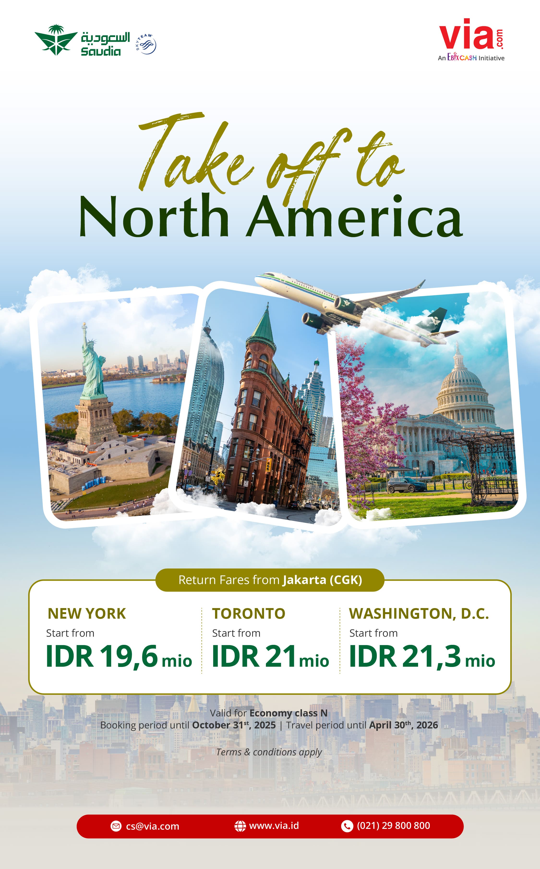 ​ Hello, North America! Score epic deals to New York, Toronto, and Washington, D.C. start from IDR 19,6 mio.