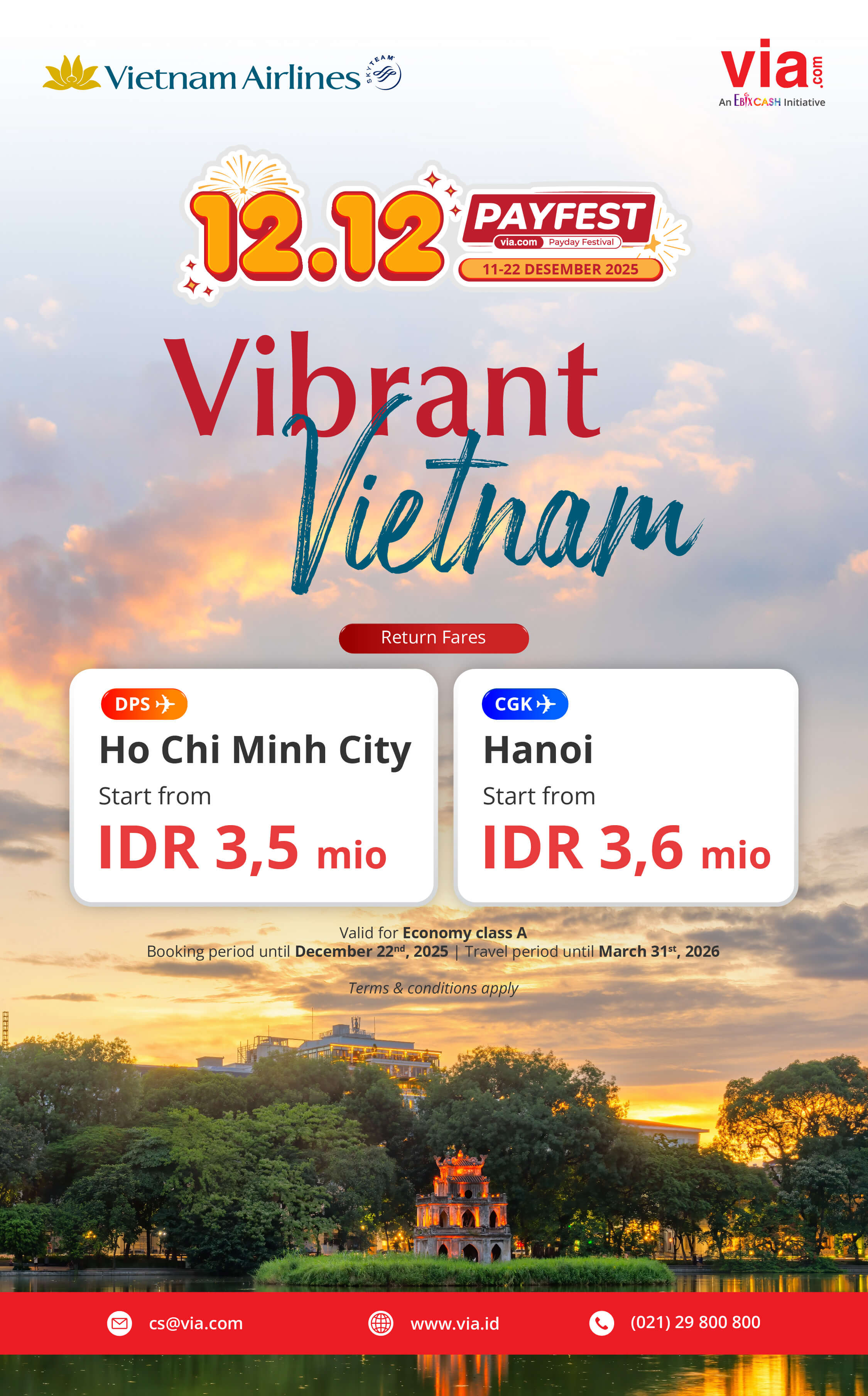 ​ Vibrant Vietnam with Vietnam Airlines! Fly to Ho Chi Minh city and Hanoi start from IDR 3,5 mio. ​