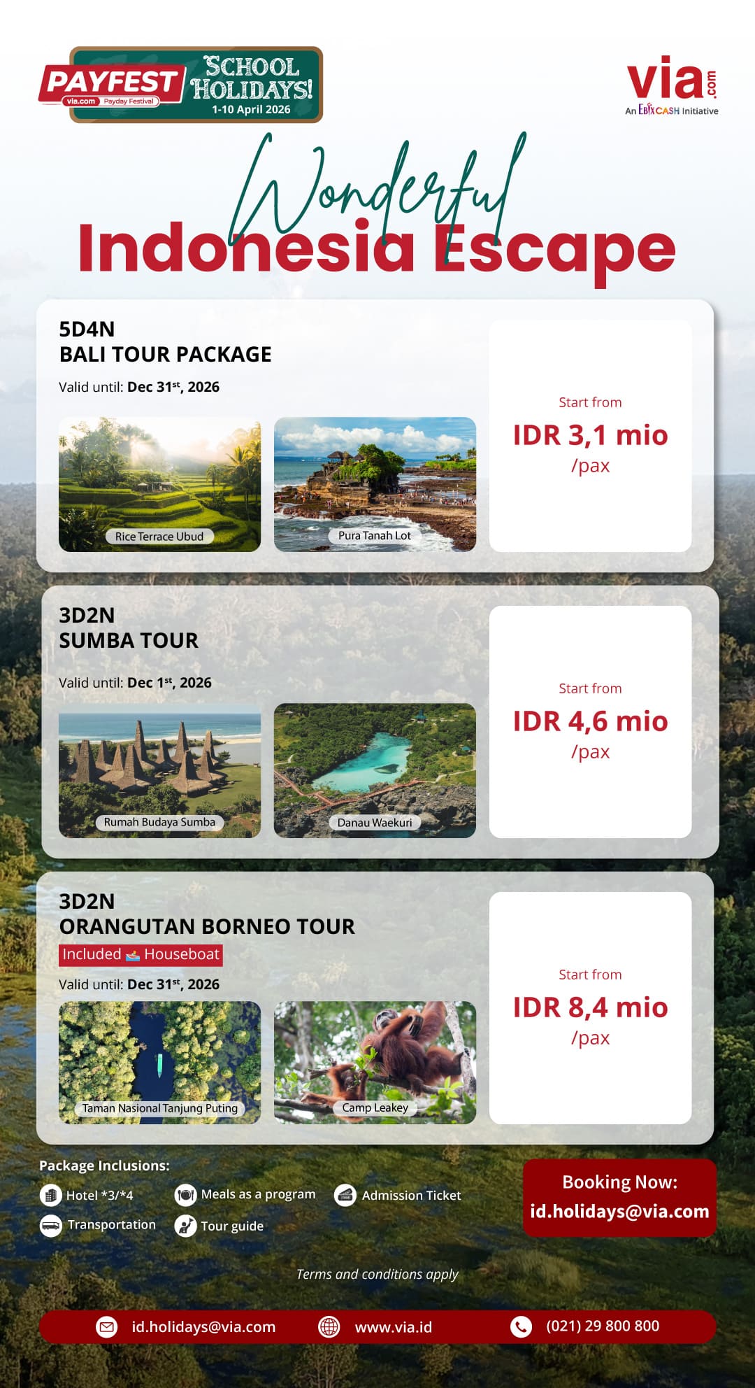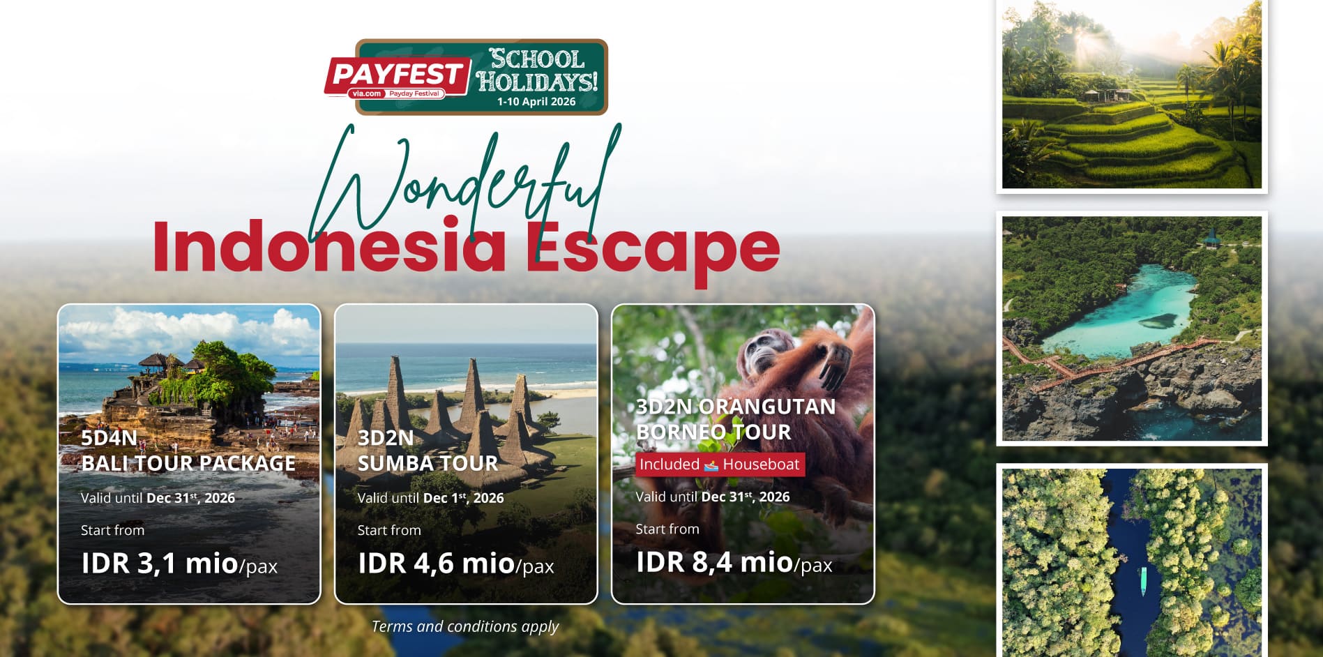 Escape to the wonderful cities in Indonesia with PAYFEST School Holidays tour packages, start from IDR 3,1 mio/pax!